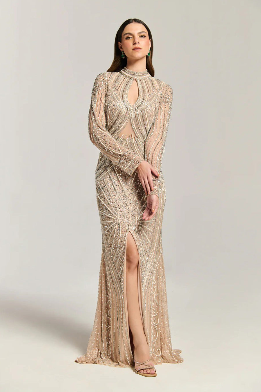 Luxury Beige Embellished Gown Dress