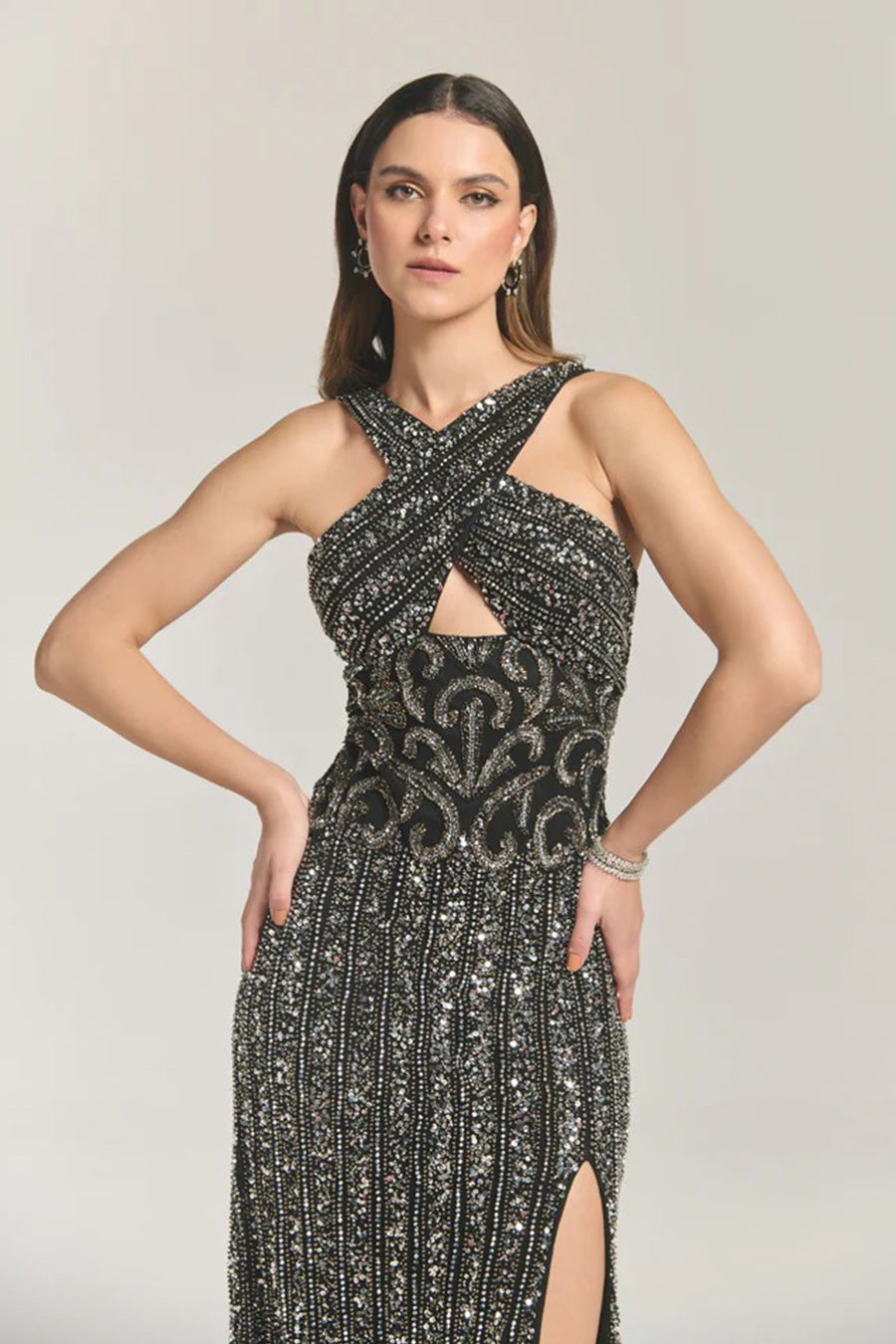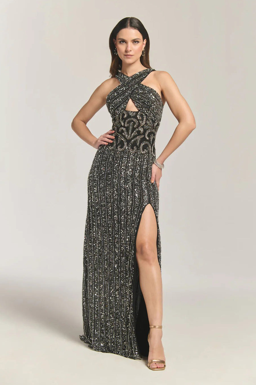 • Stunning black sequinned gown