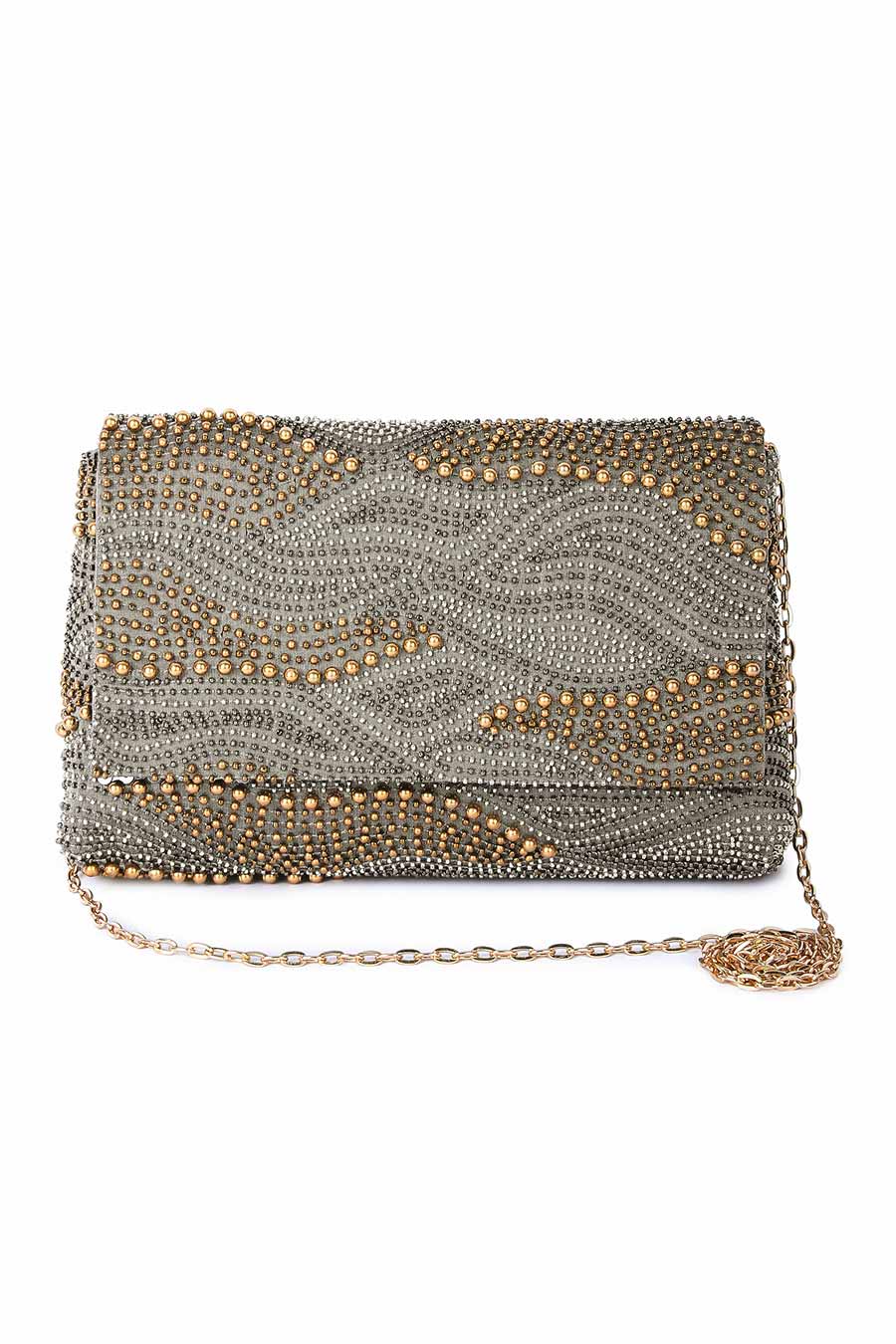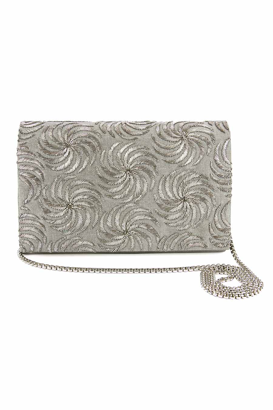 Grey Shine Pearl & Sequins Embroidered Clutch