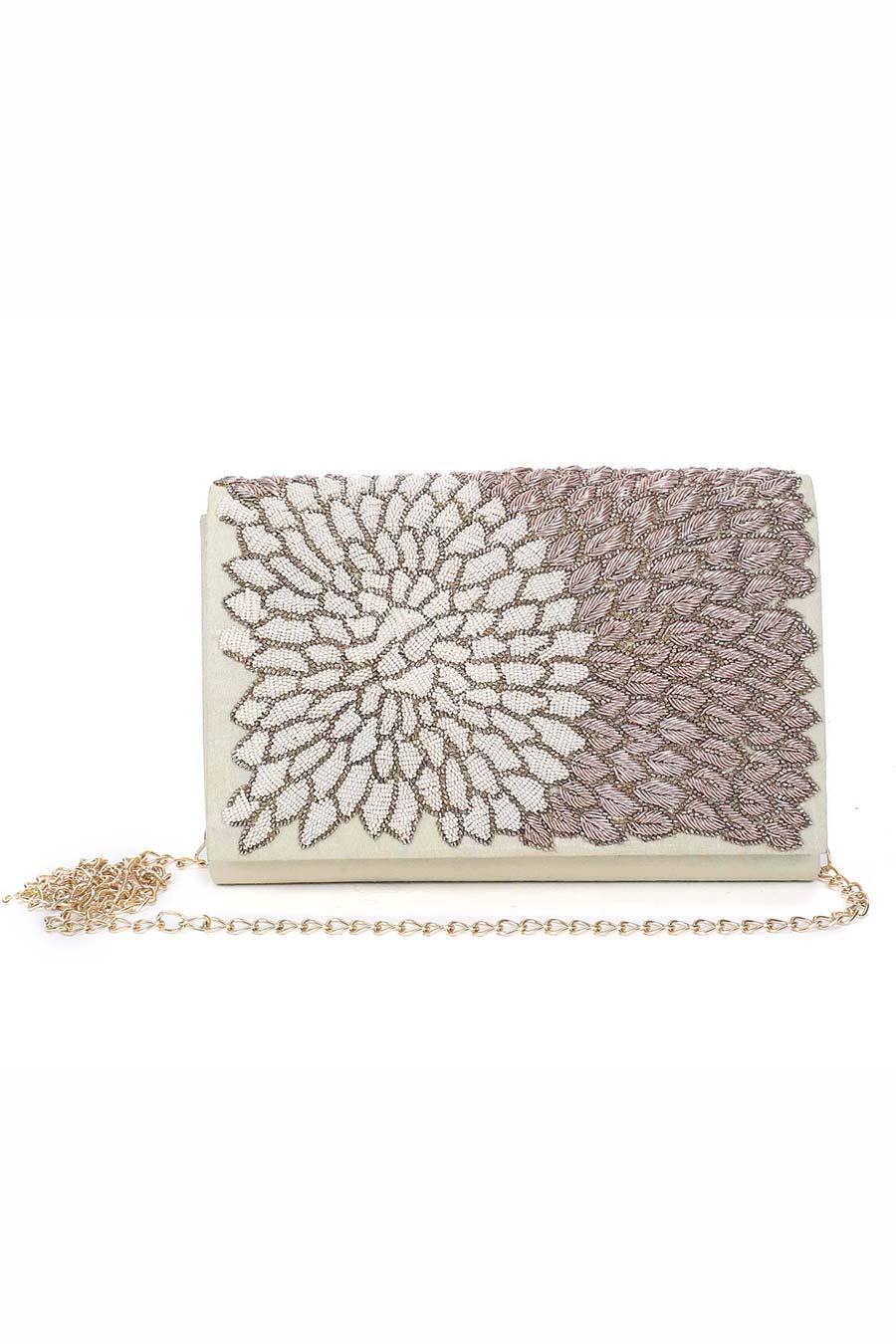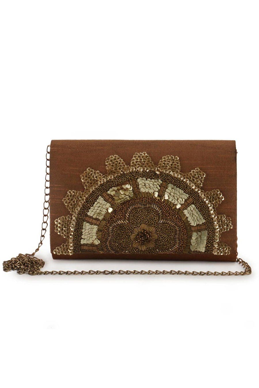 Bronze Pearl & Beads Hand-Embroidered Clutch