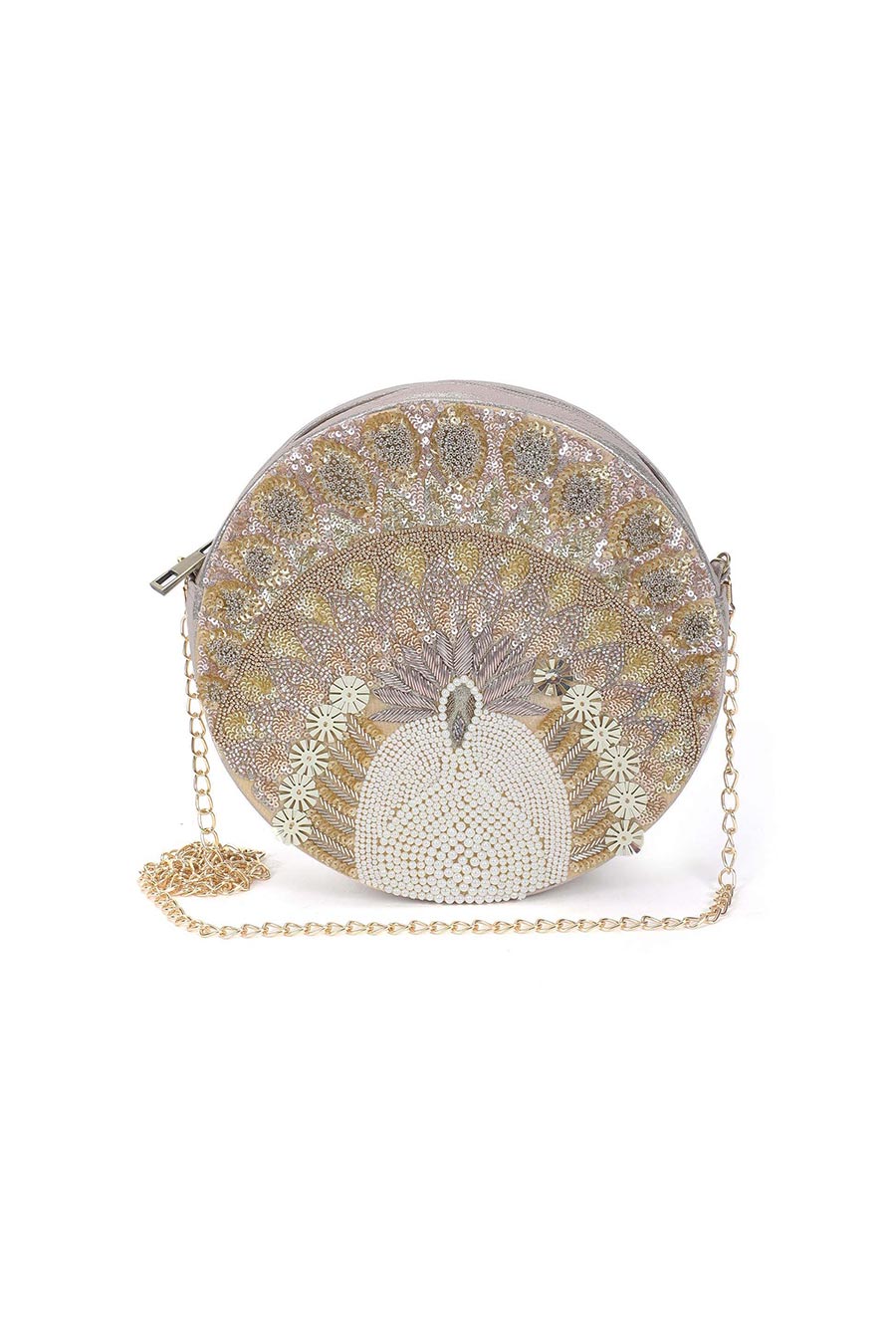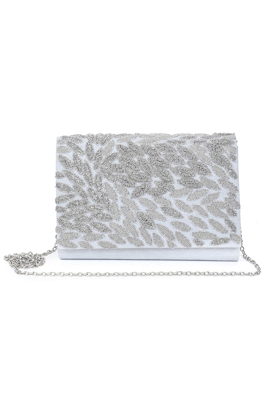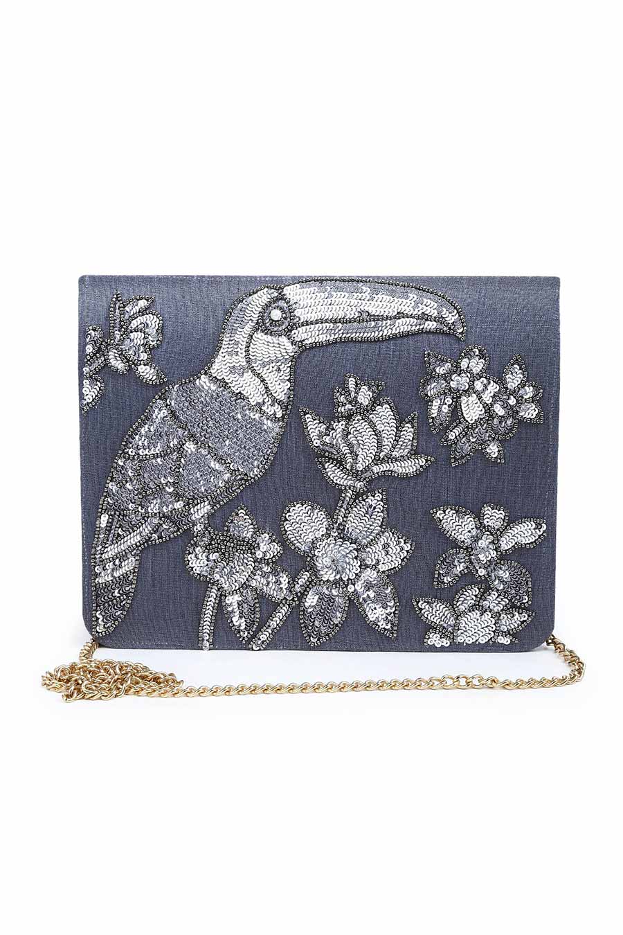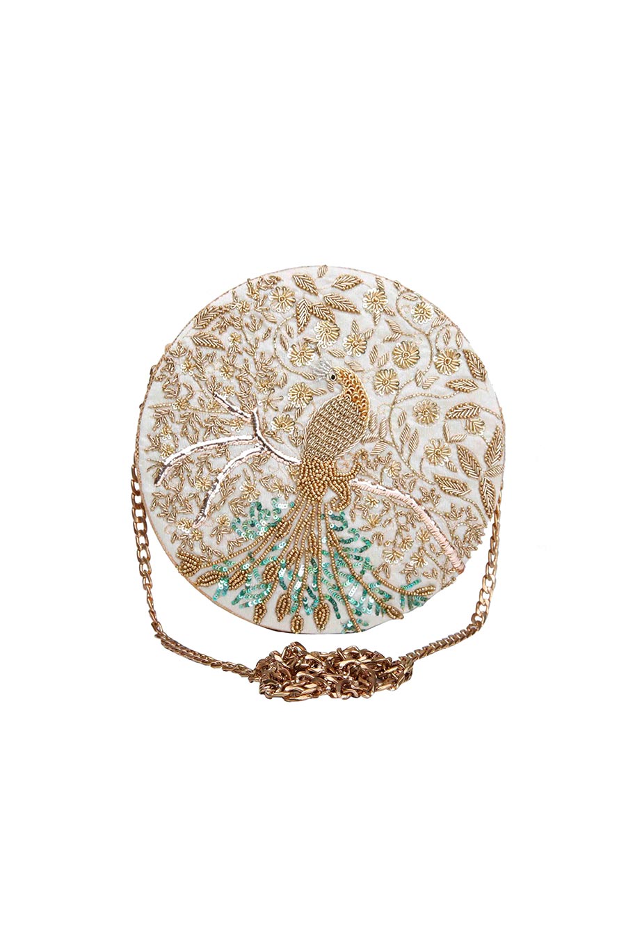 Silver Dancing Peacock Hand-Embroidered Clutch