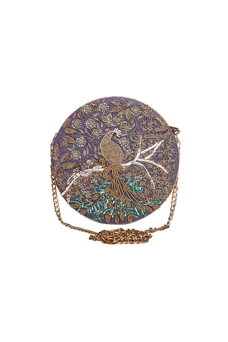 Purple Peacock Ornate Hand-Embroidered Clutch