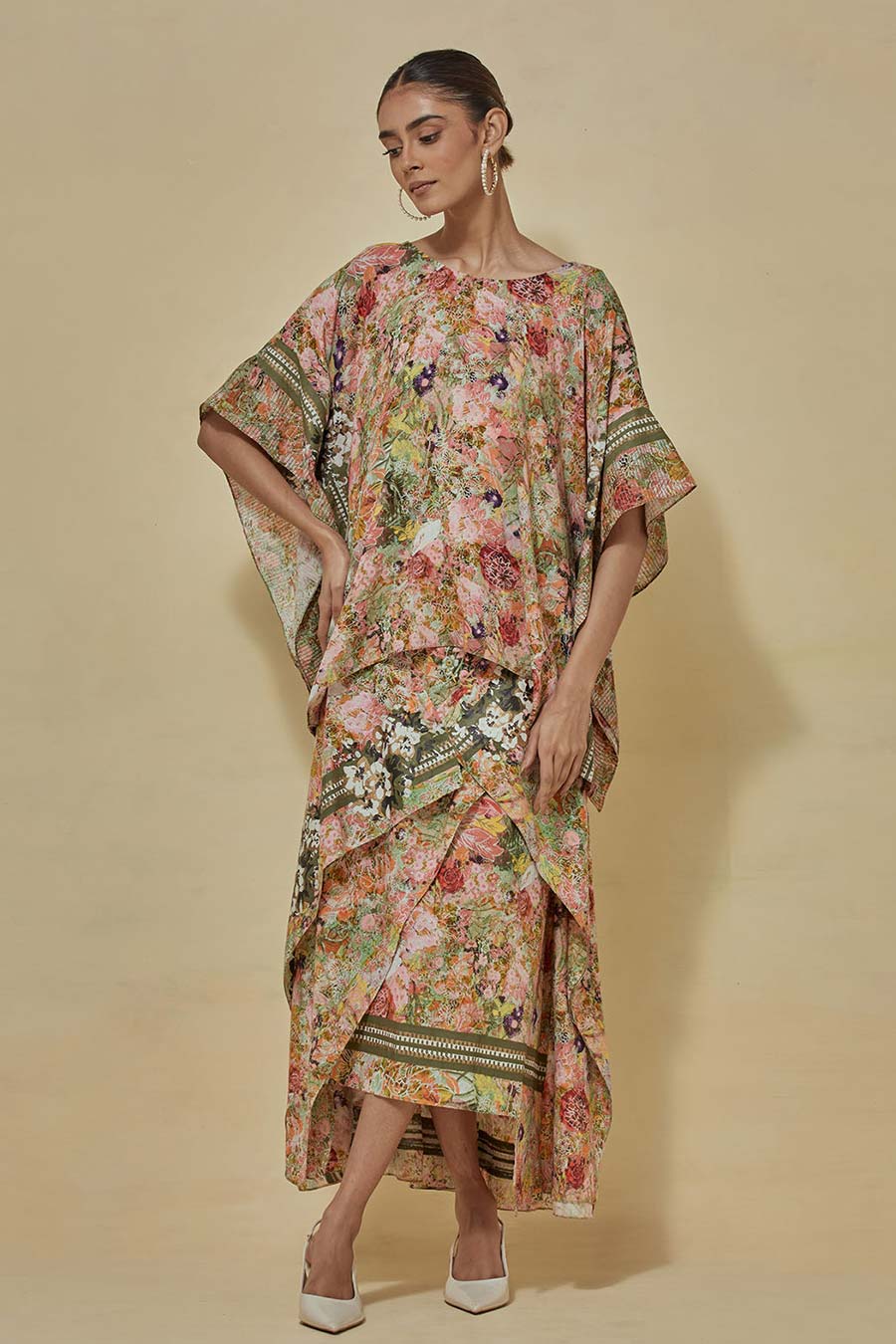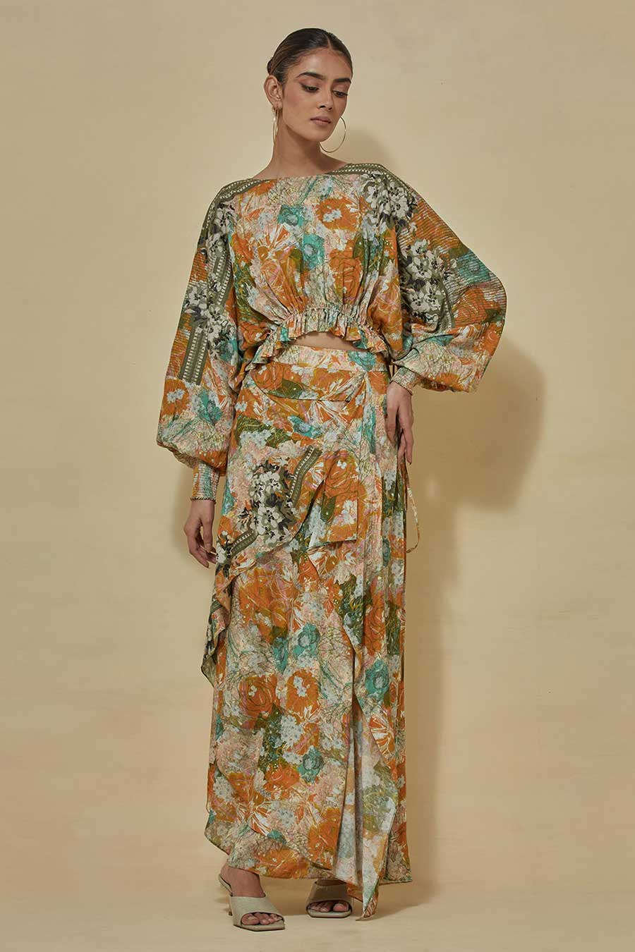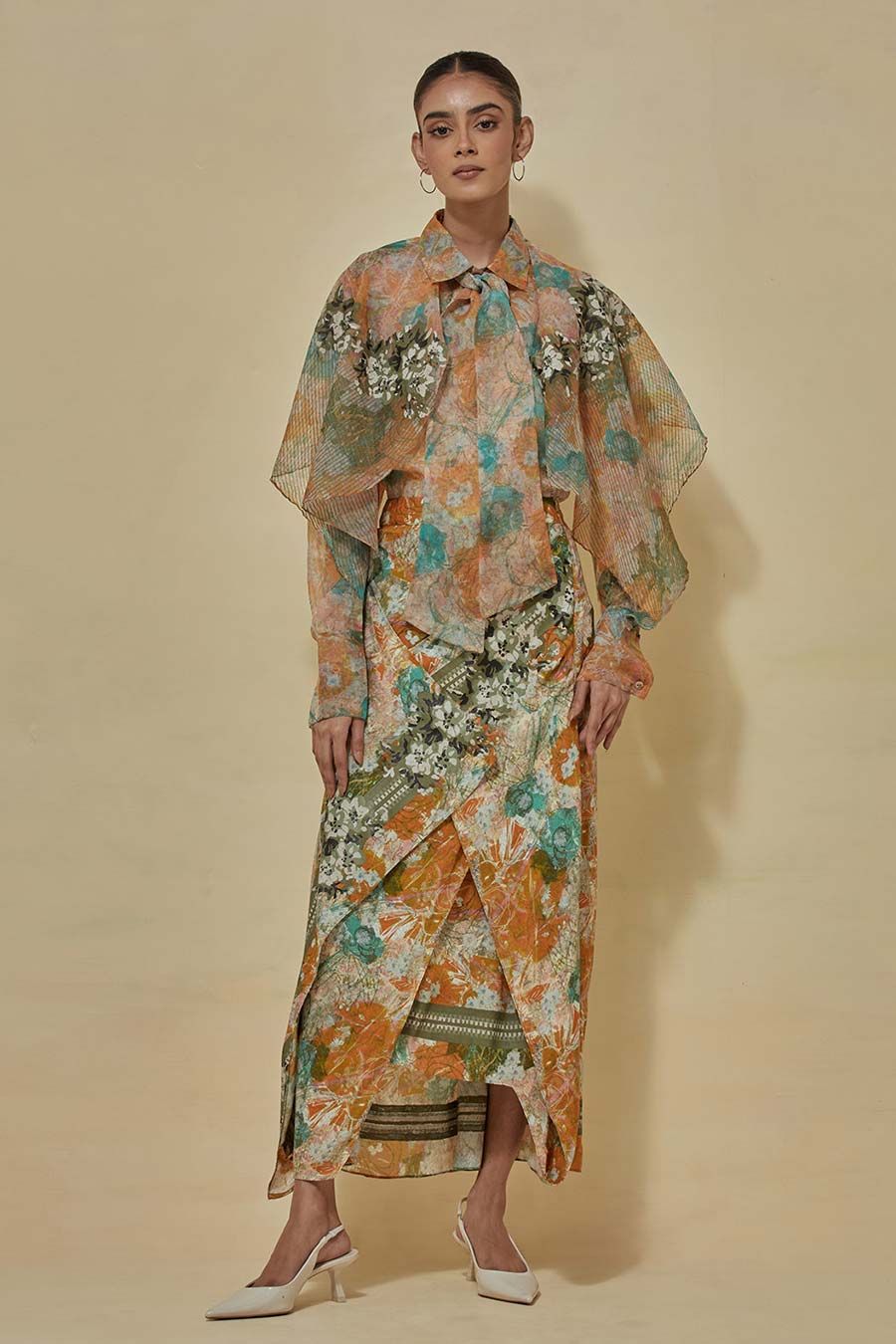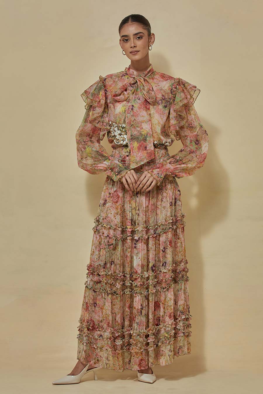 Printed Organza Shirt With Chiffon Tiered Skirt