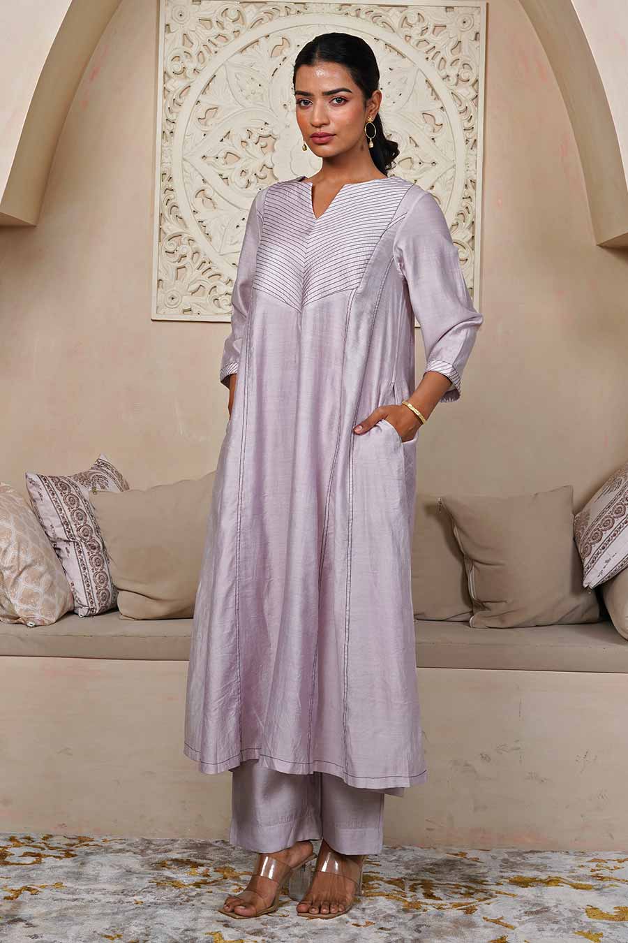 - Adorned with contrast black-stitch pintuck at yoke and cuffs