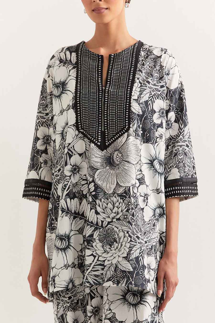 • Round neck and 3/4th sleeves with lace detailing