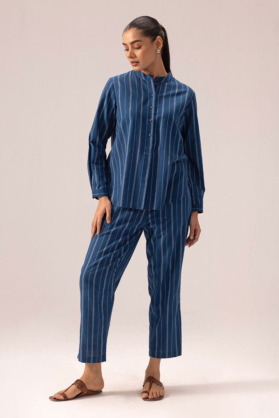Blue Aparna Handwoven Top & Pant Co-Ord Set