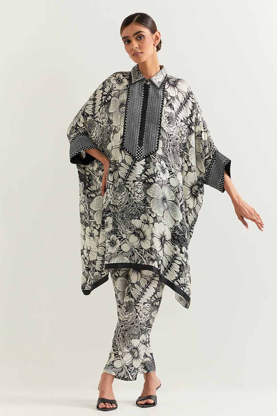 Black & White Printed Kaftan Co-Ord Set