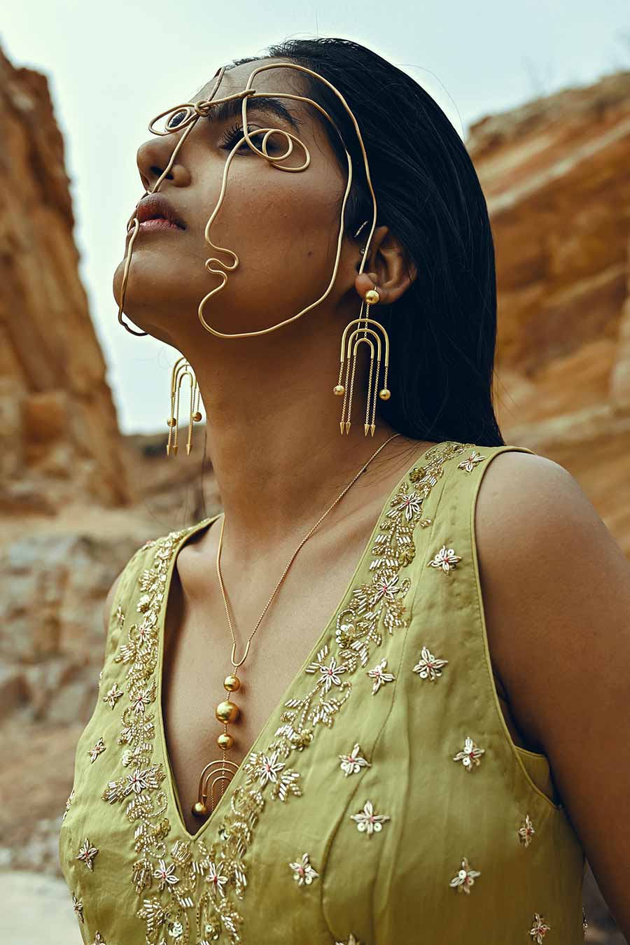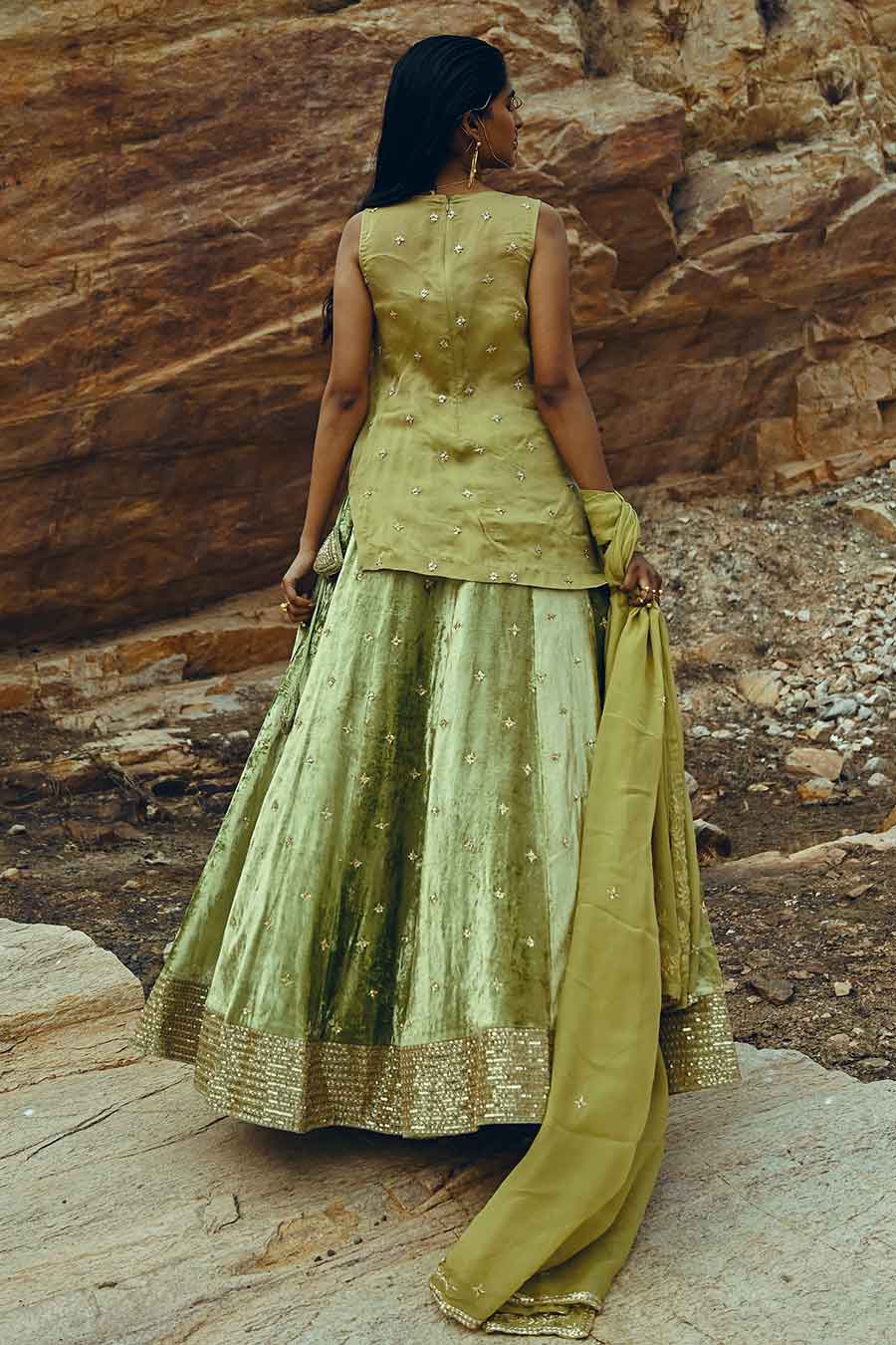 • Green kurta and lehenga set