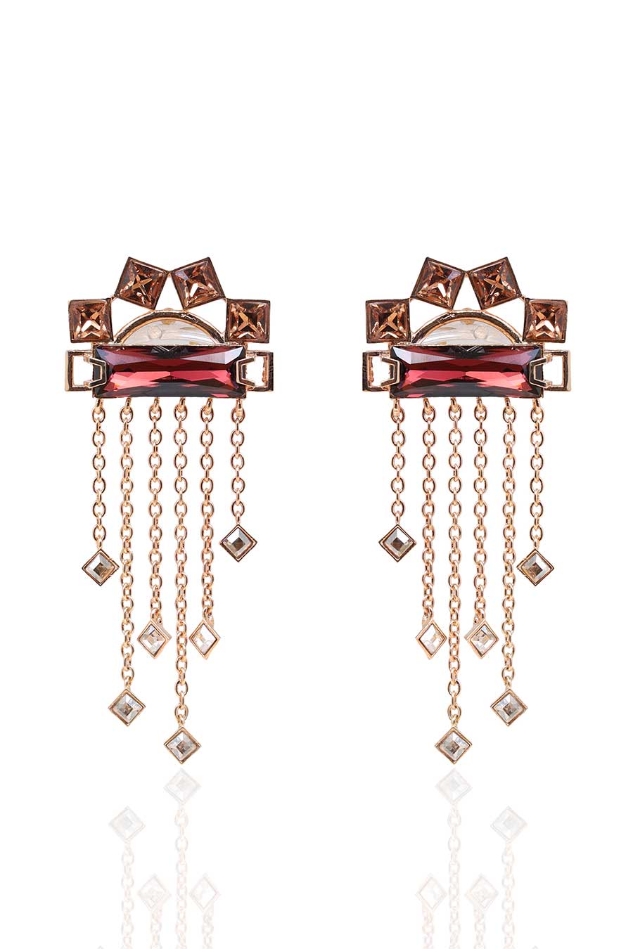 Gold & Maroon Swarovski Kabuki Earrings
