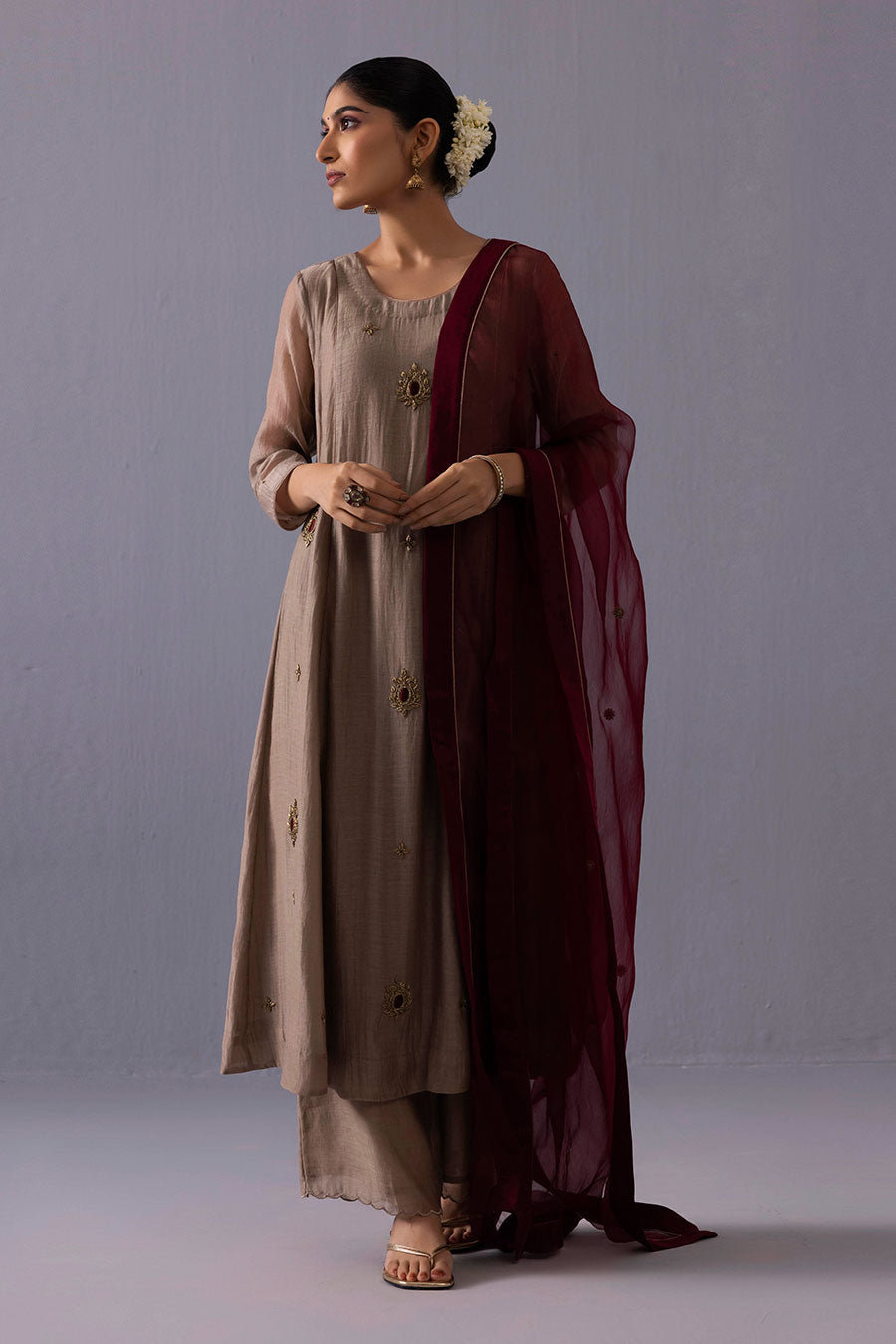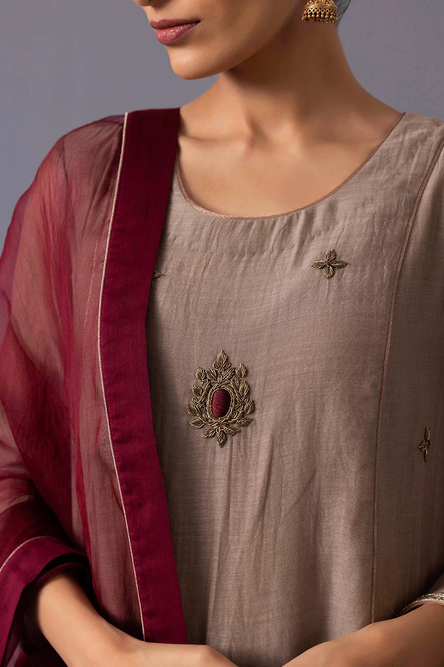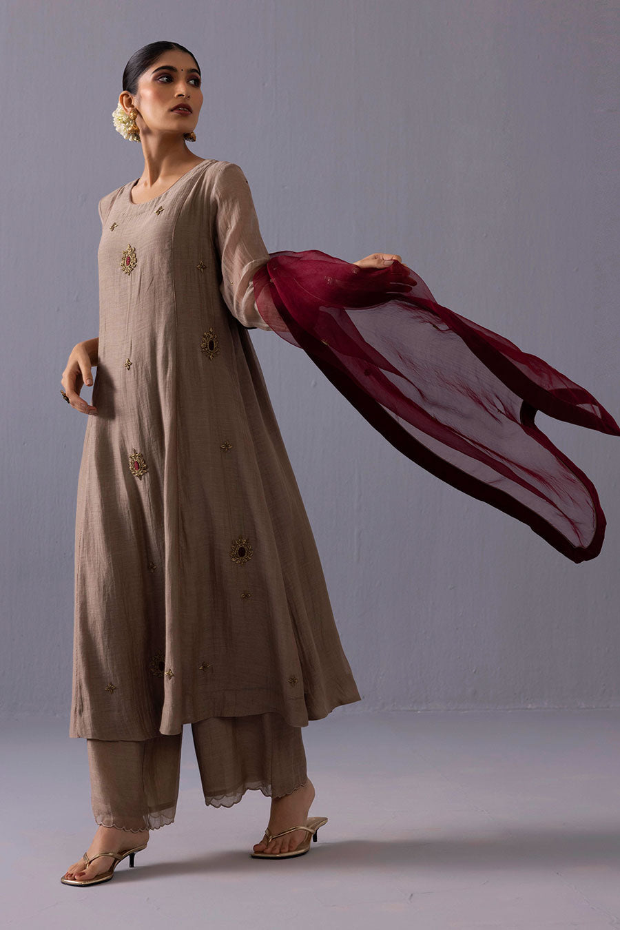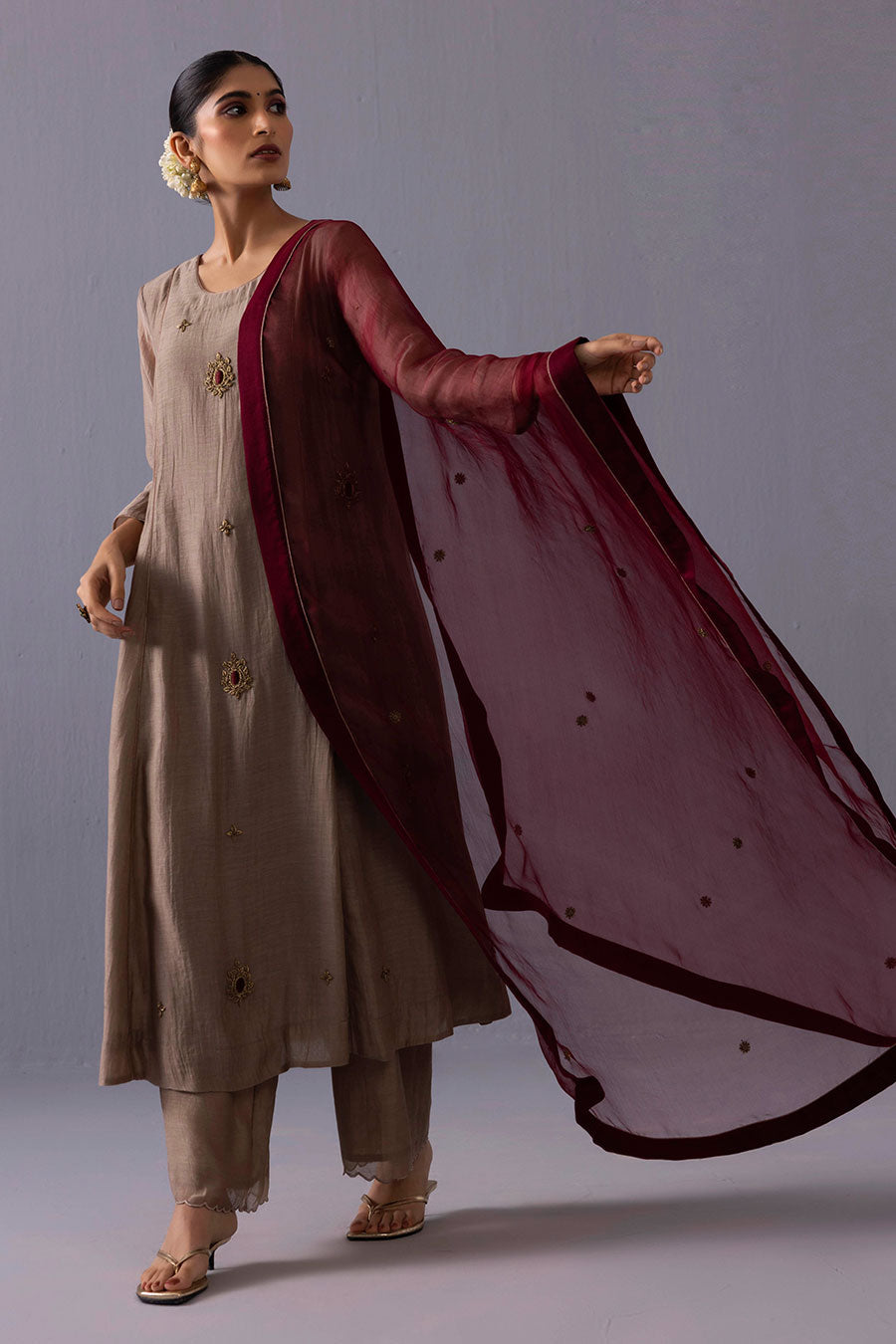 • Material - Kurta & Pants - Chanderi; Dupatta - Organza; Lining - Cotton