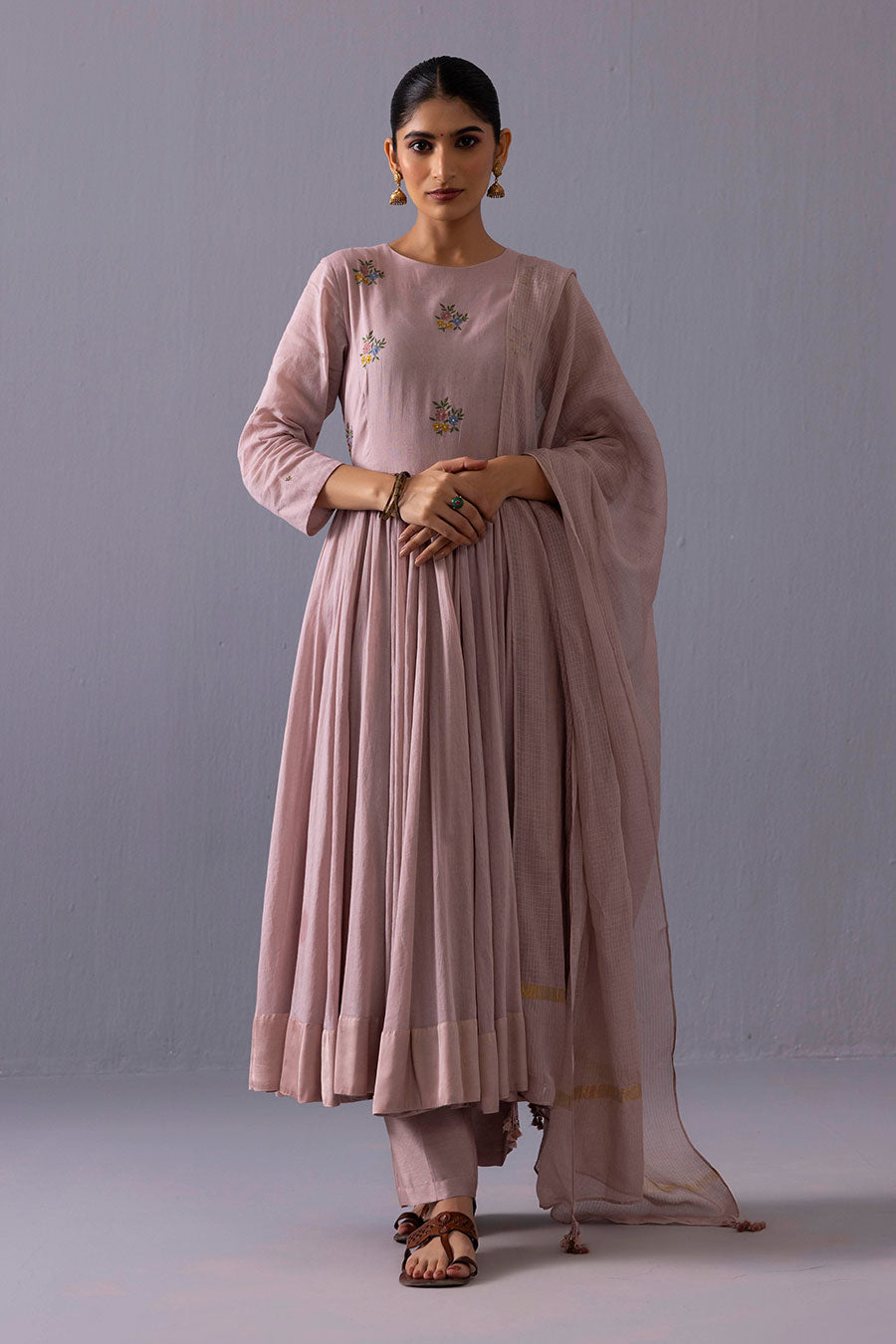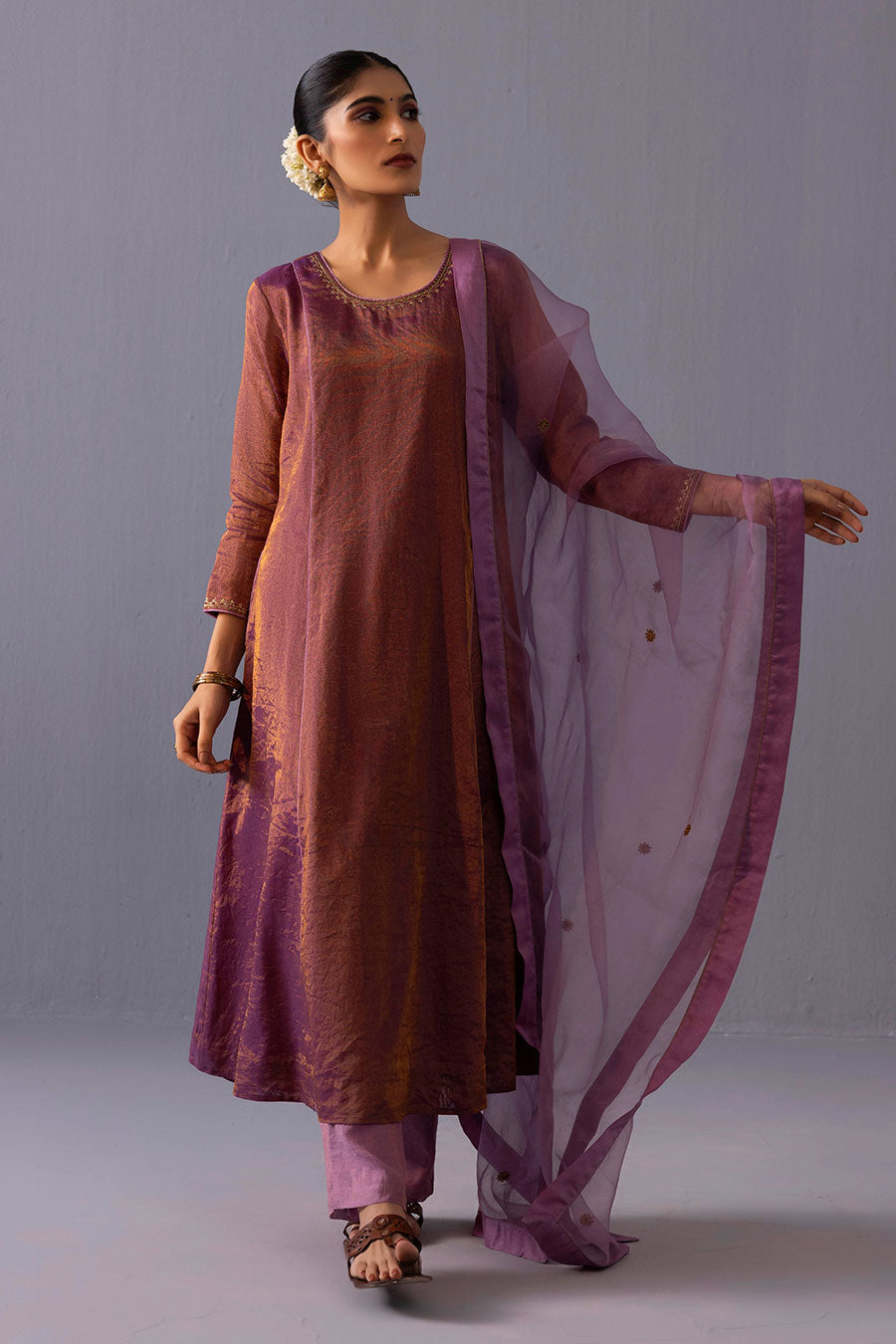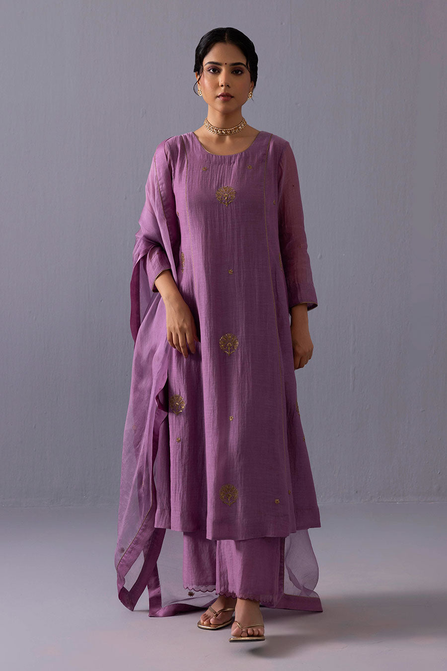 Sagarika Pink Chanderi Printed Kurta & Pant Set