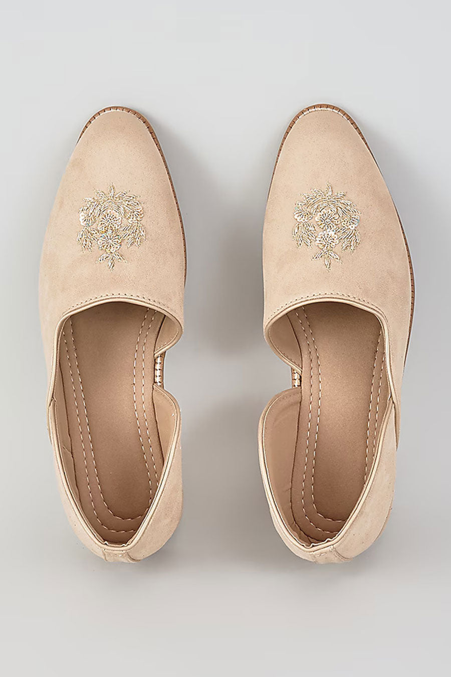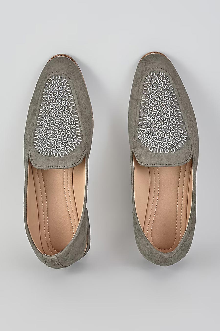 Grey Suede Cutdana Embroidered Lofers