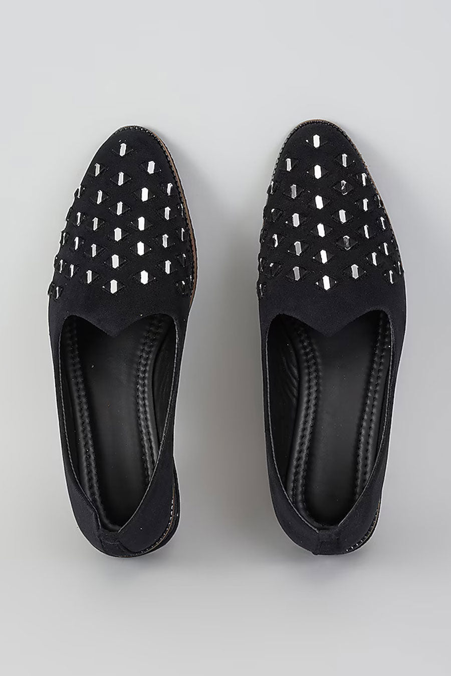 Black Suede Cutdana Embroidered Lofers