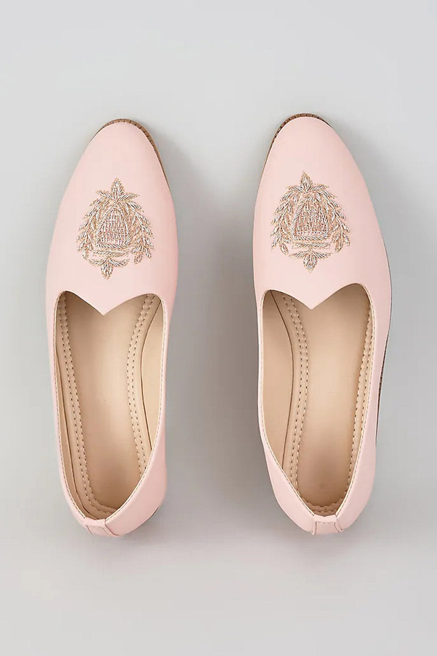 Blush Pink Zari Embroidered Royal Crest Juttis