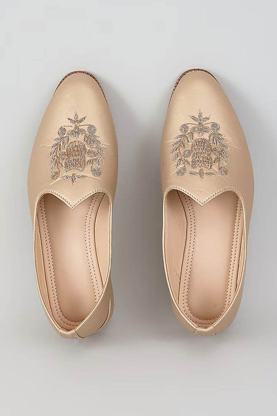 Muted Gold Zari Embroidered Royal Crest Juttis