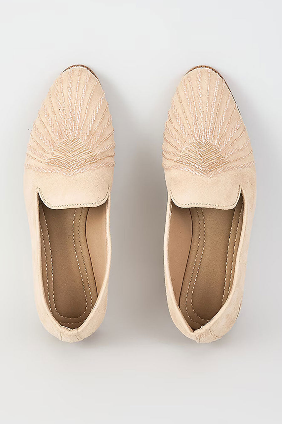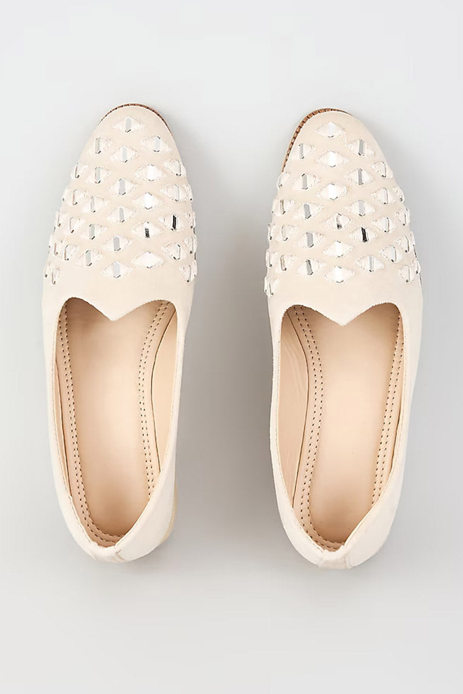 White Suede Cutdana Embroidered Lofers