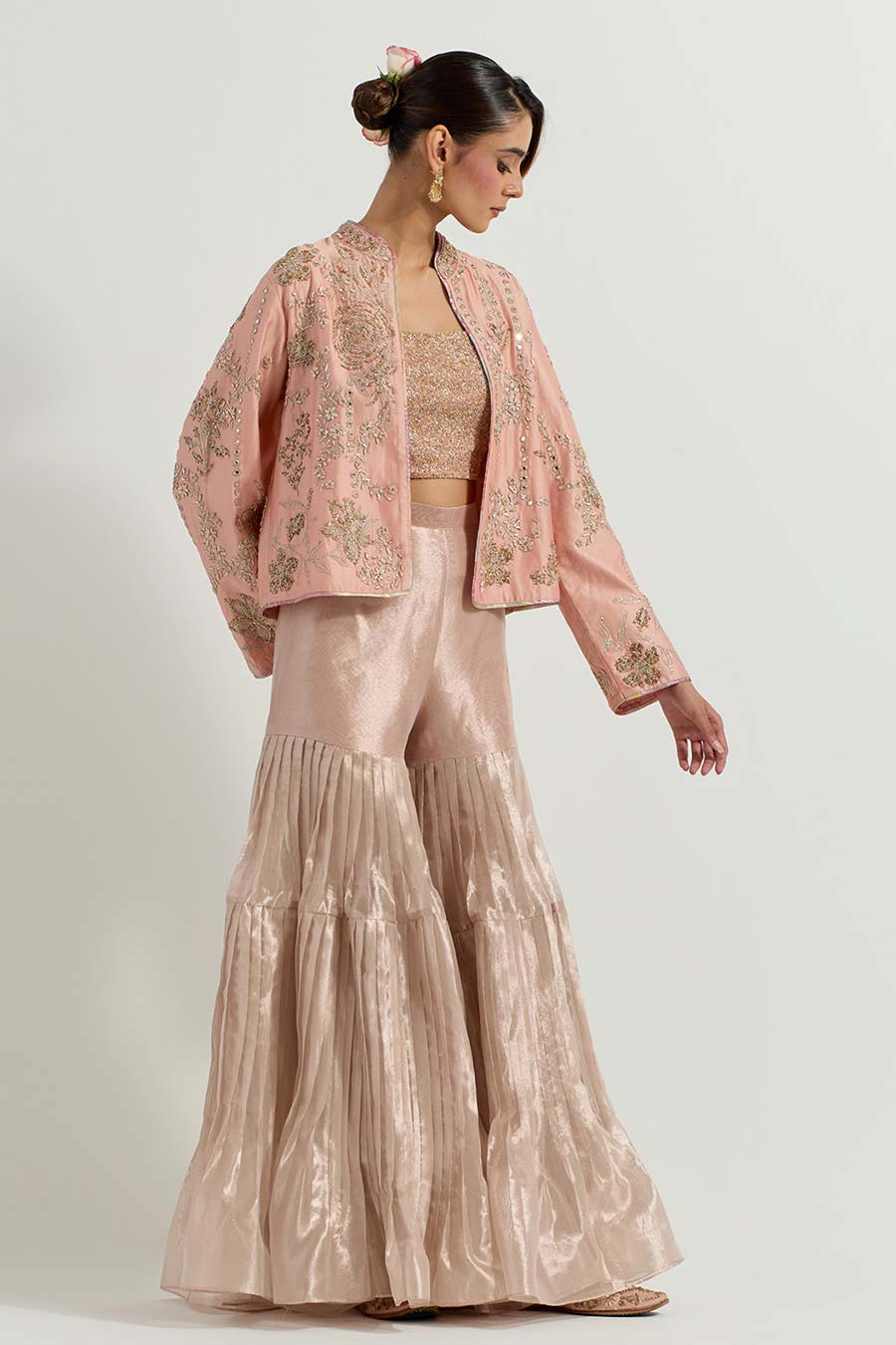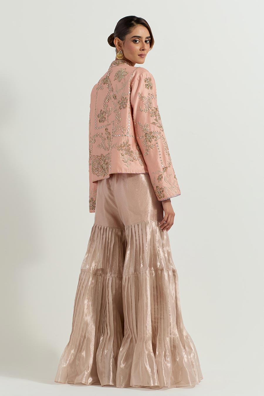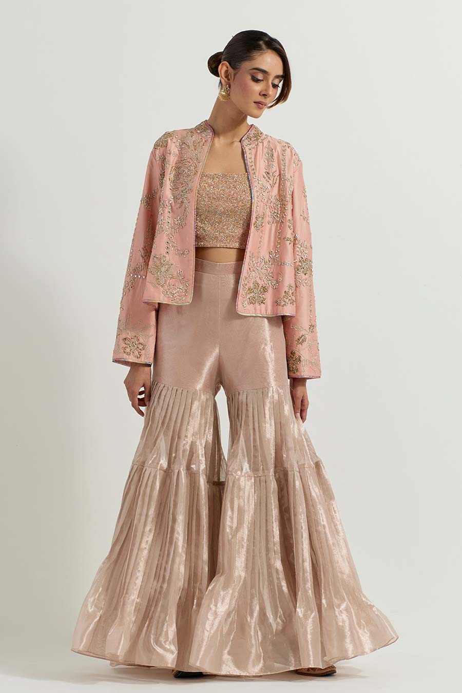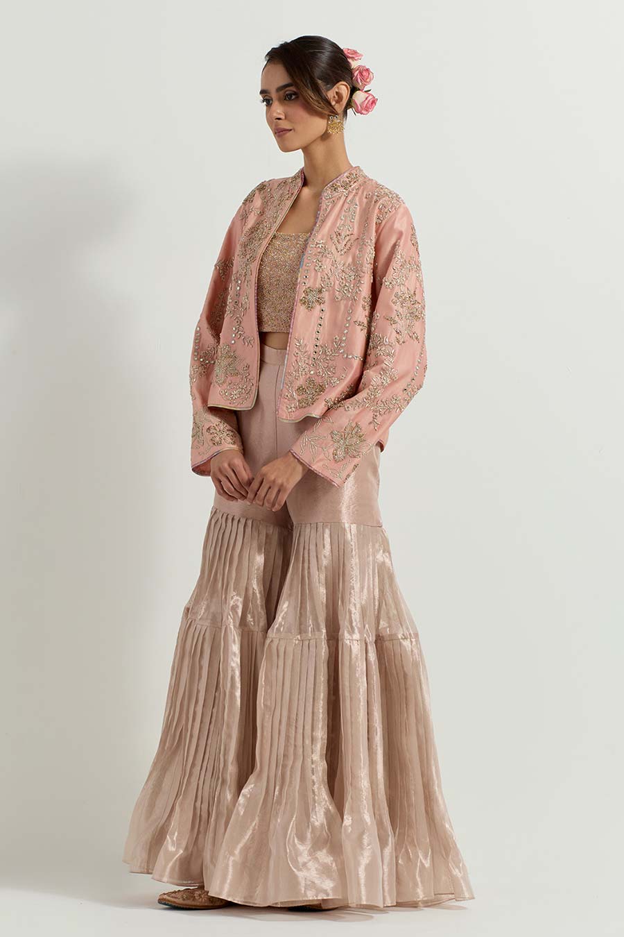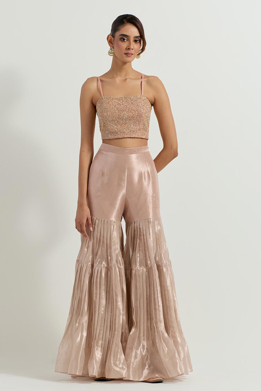 • Paired with a pleated Tissue Gharara pants