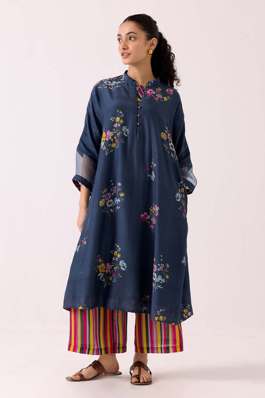 Blue Floral Printed Kurta & Pant Set