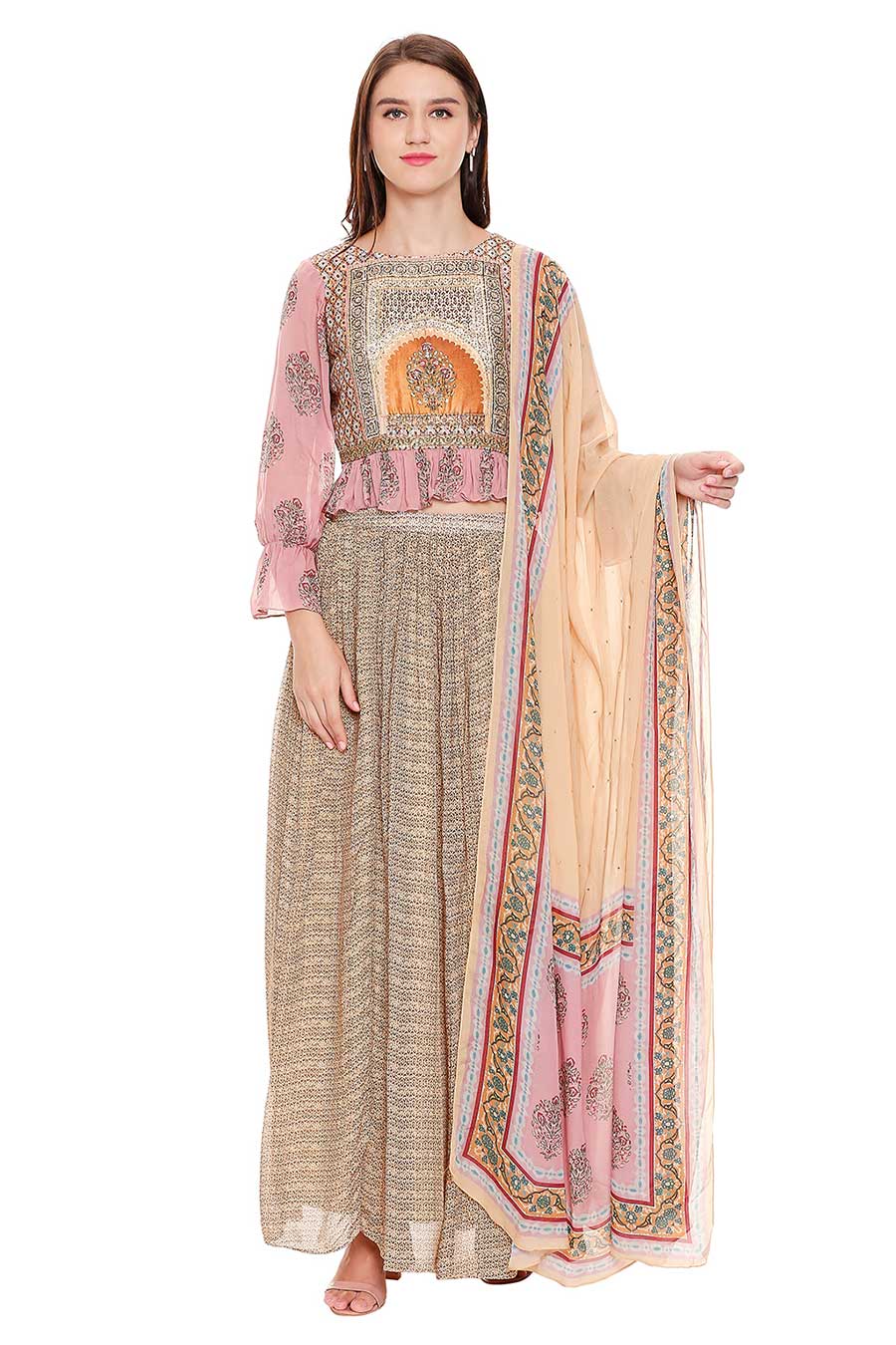 Pink Top & Skirt Set with Dupatta (Set of 3)