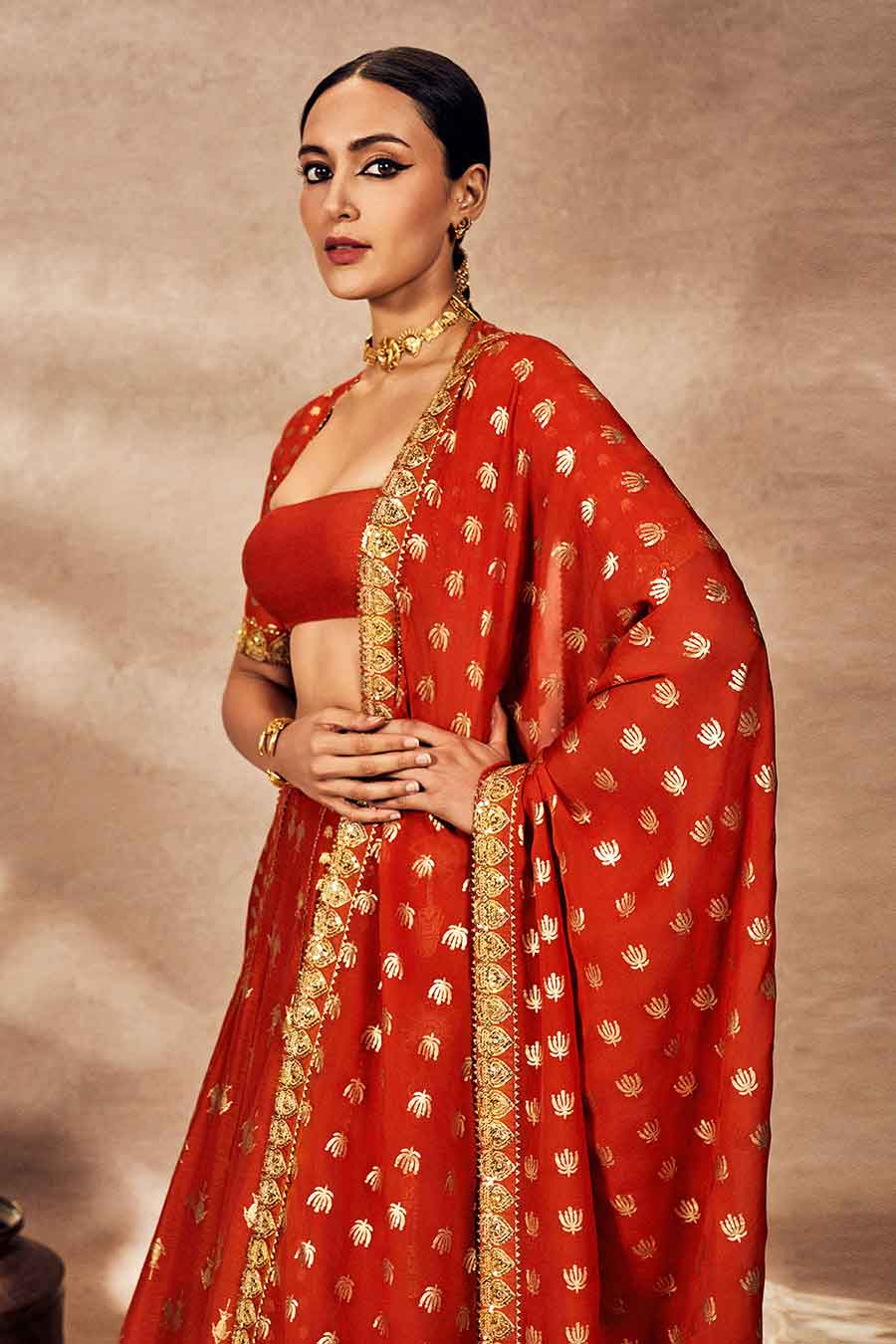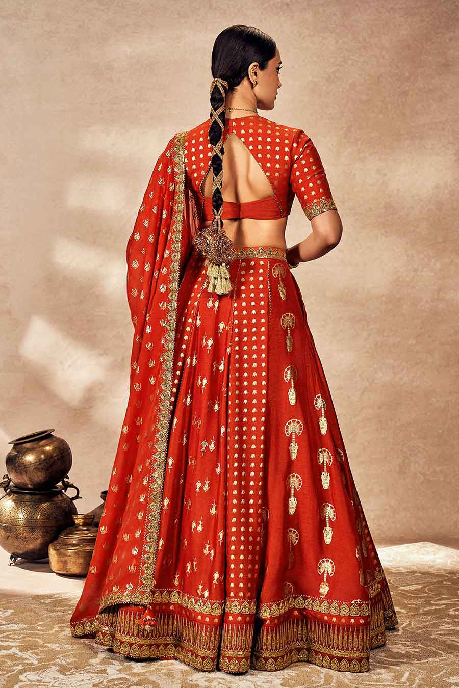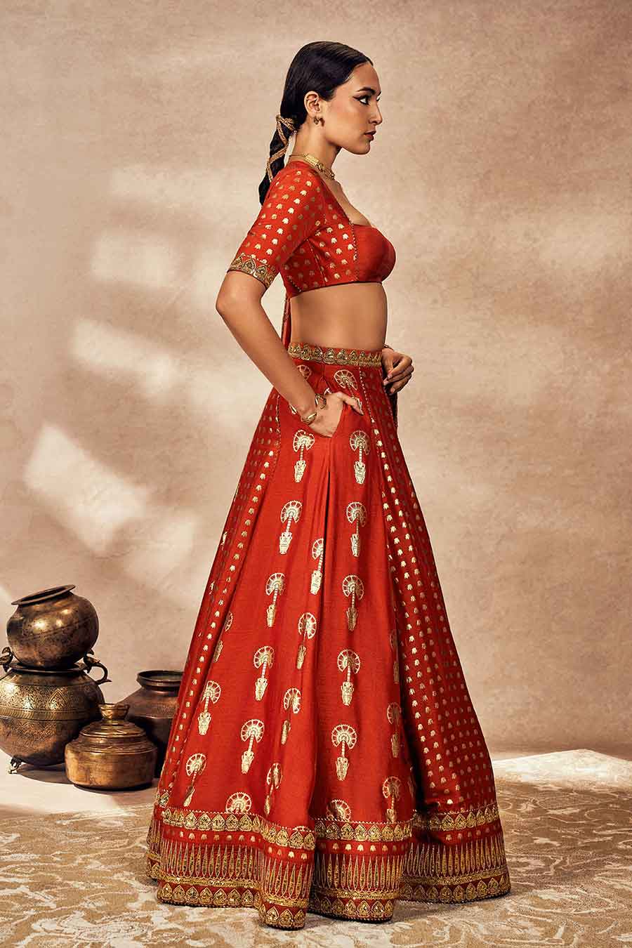 Rust Foil Embellished Lehenga Set