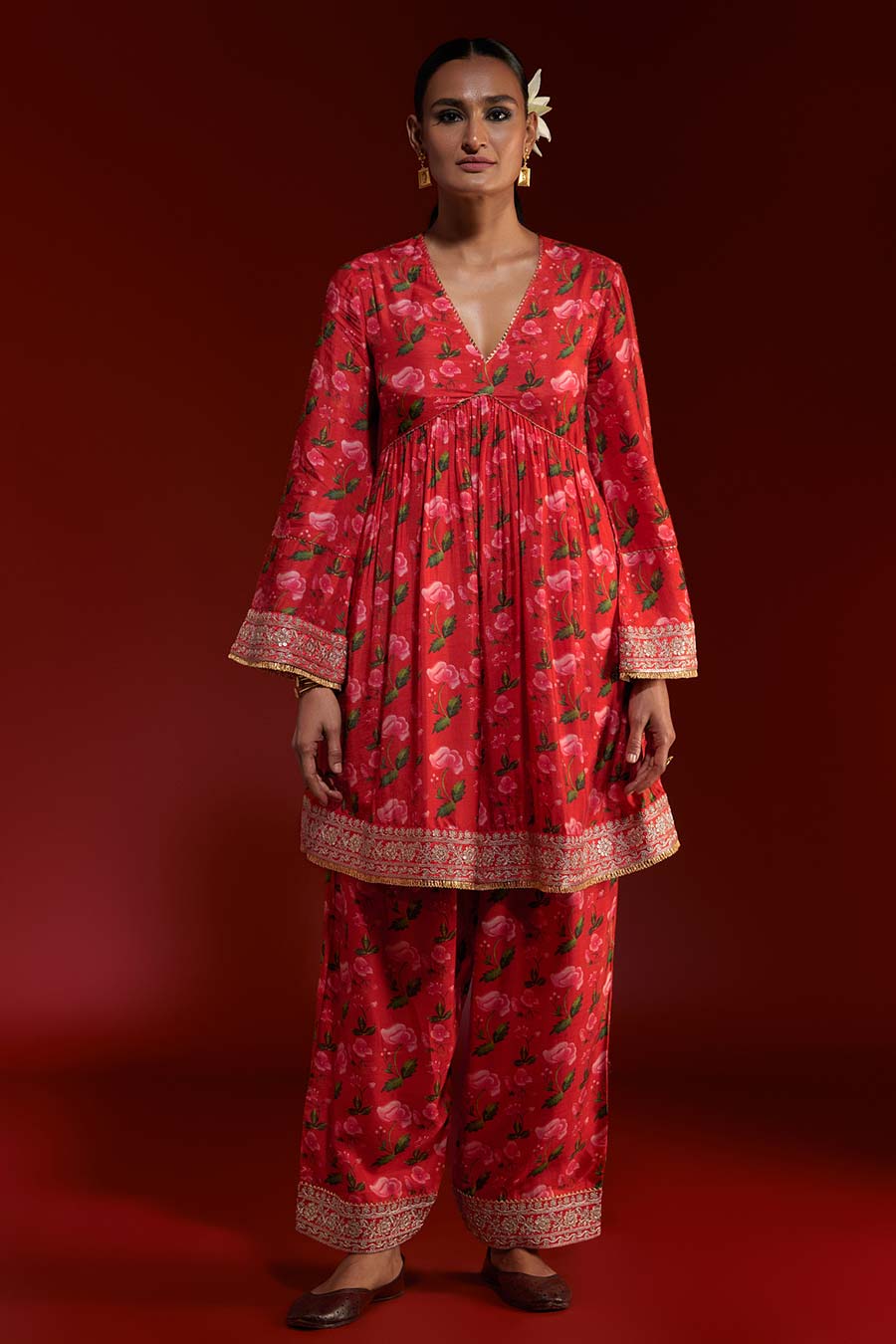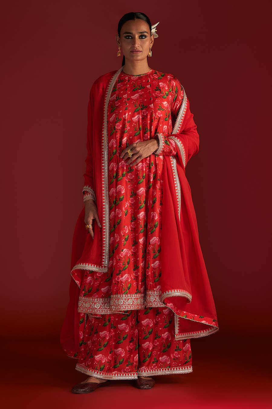Red Rain Lily Embroidered Kurta & Salwar Set