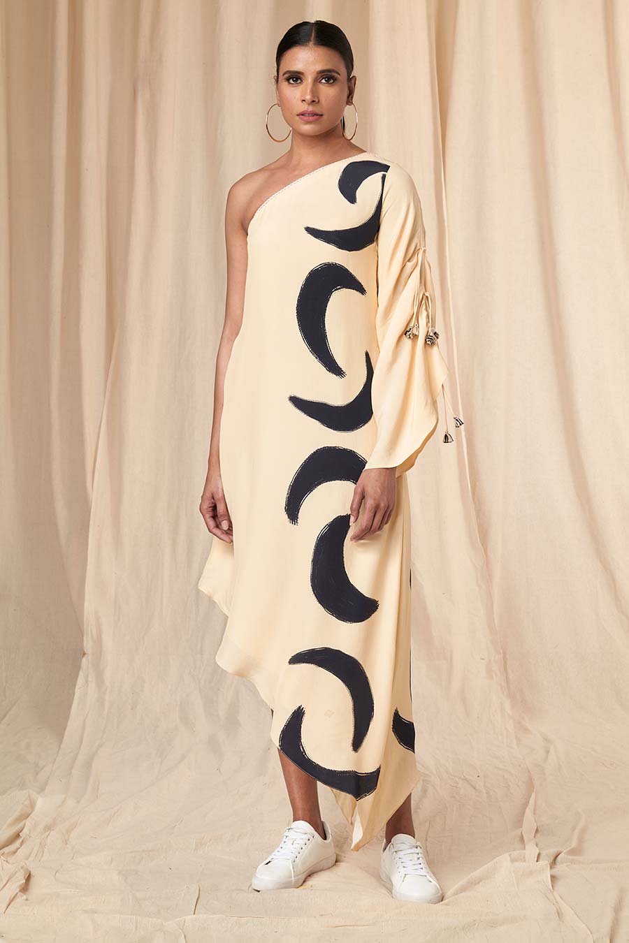 Vanilla Mist Embroidered One-Shoulder Kaftan