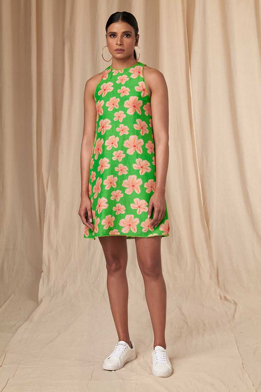 Pink-Green Bloomerang Smocked Kaftan Dress