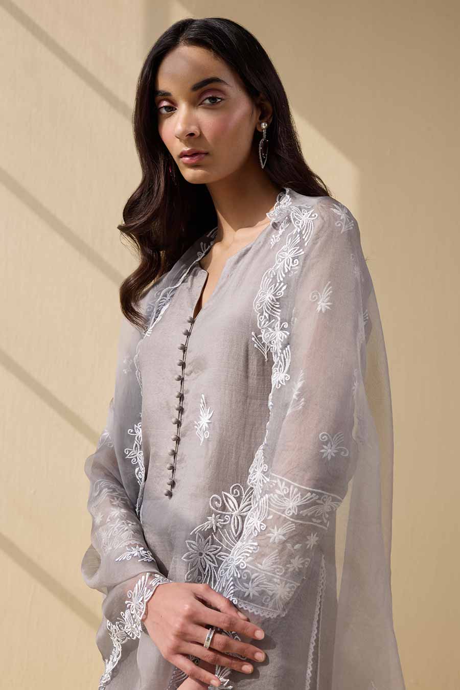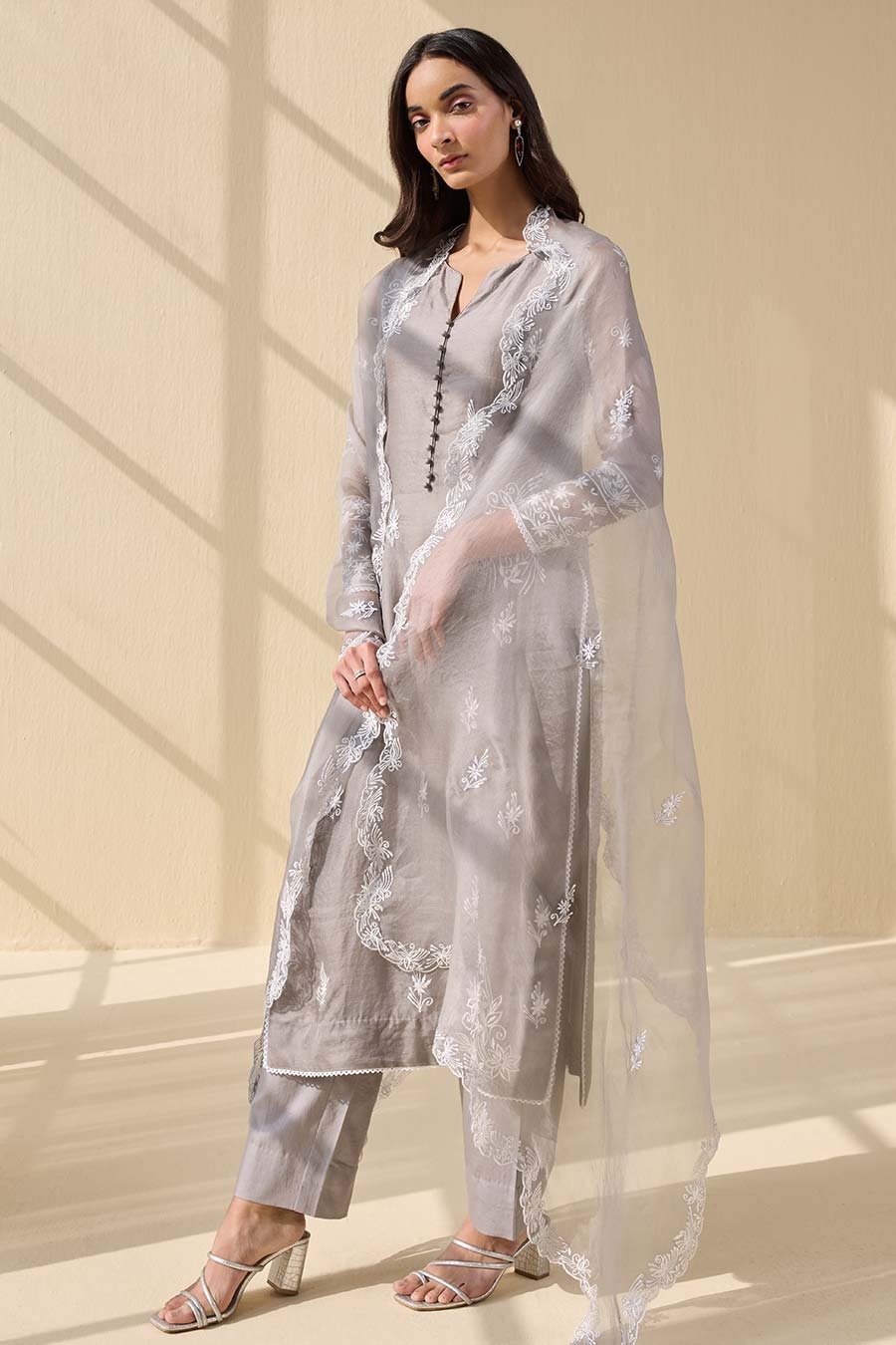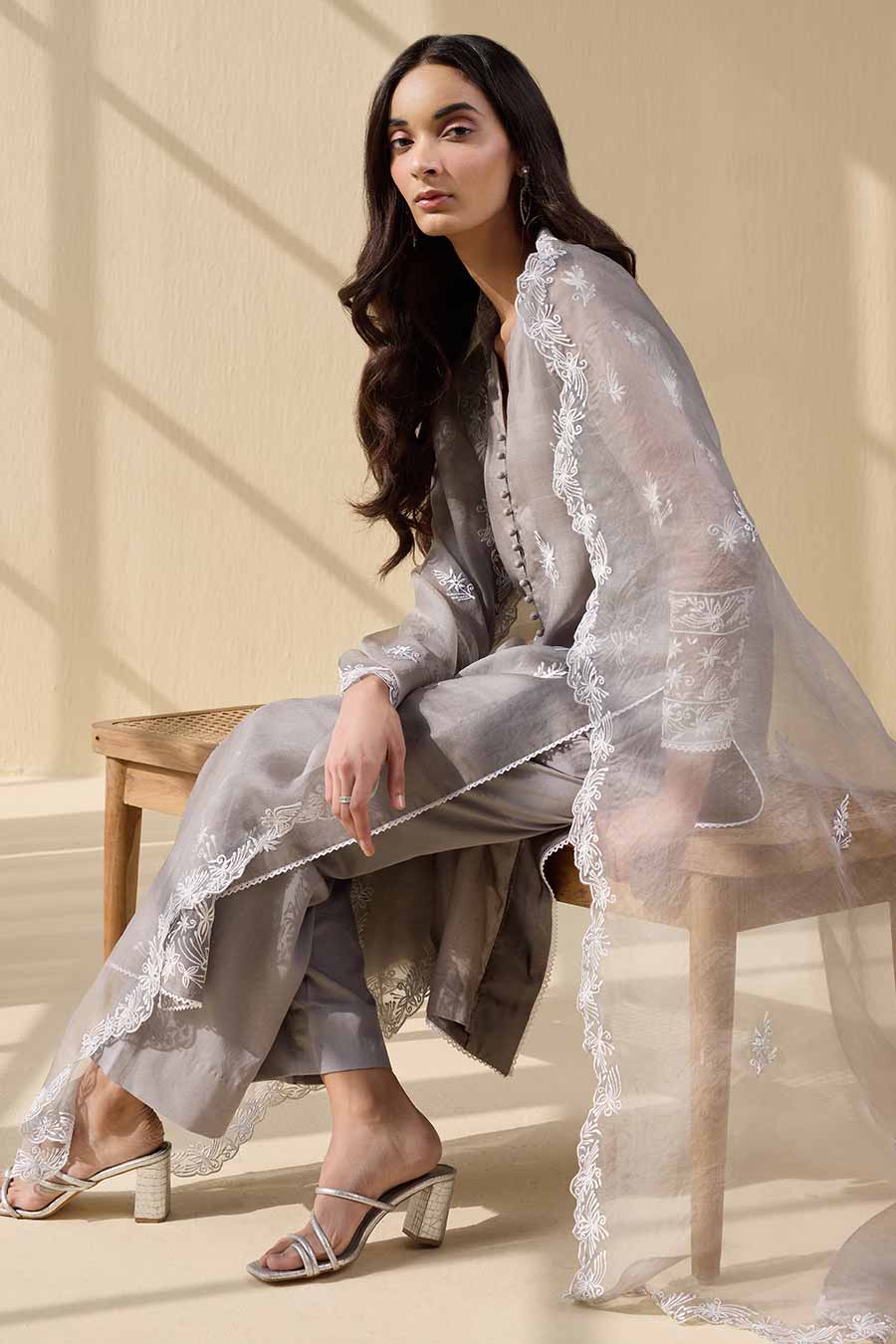 • Material - Kurta and Dupatta - Organza; Pant - Cotton Satin