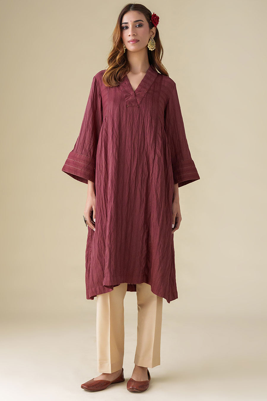 Maroon Hand-Embellished Kurta