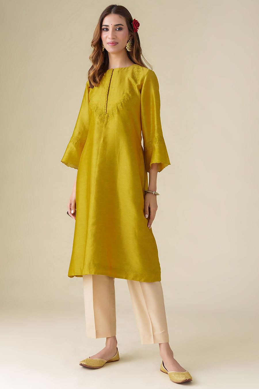 Mustard Hand-Embroidered Kurta & Pant Set (Set of 2)