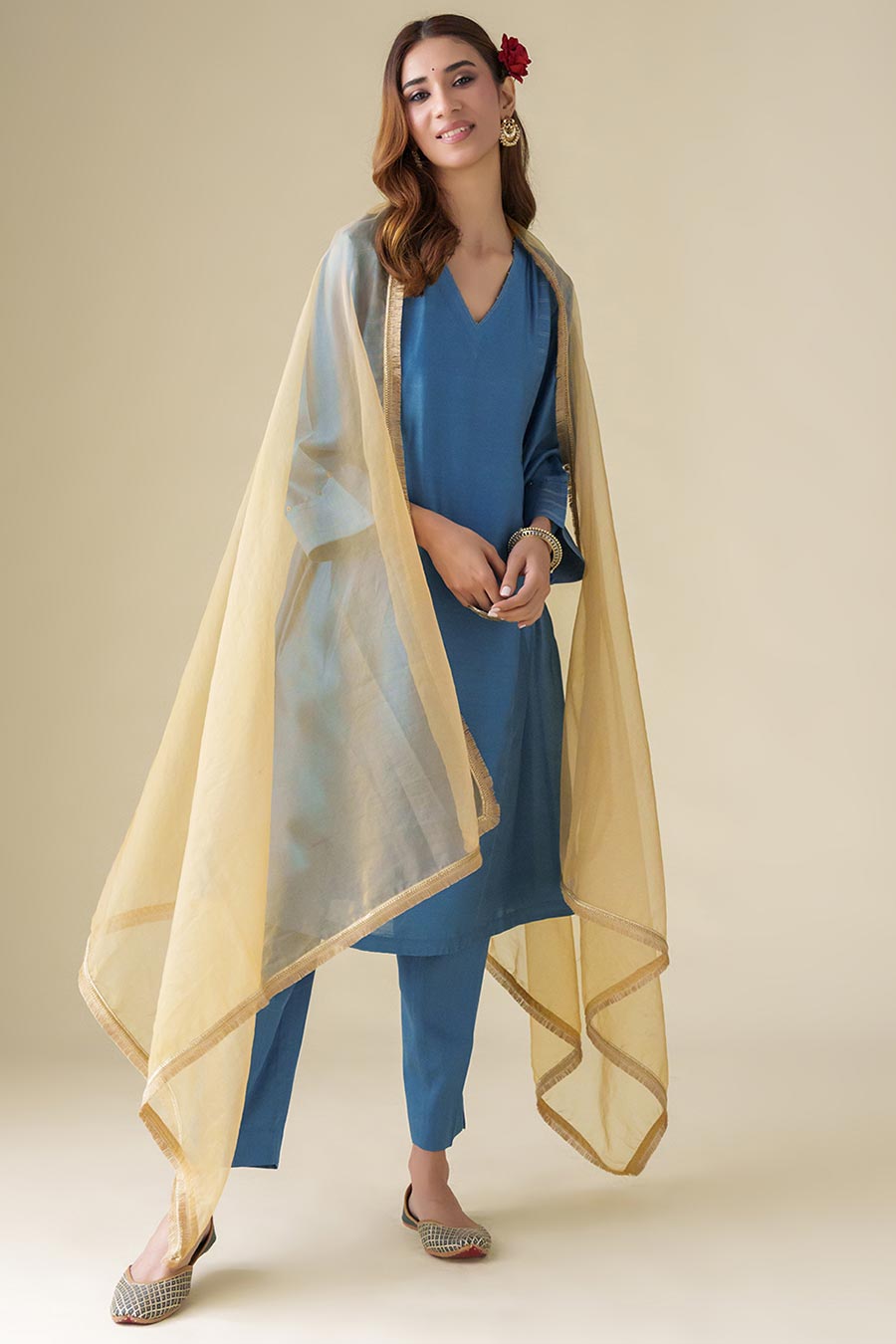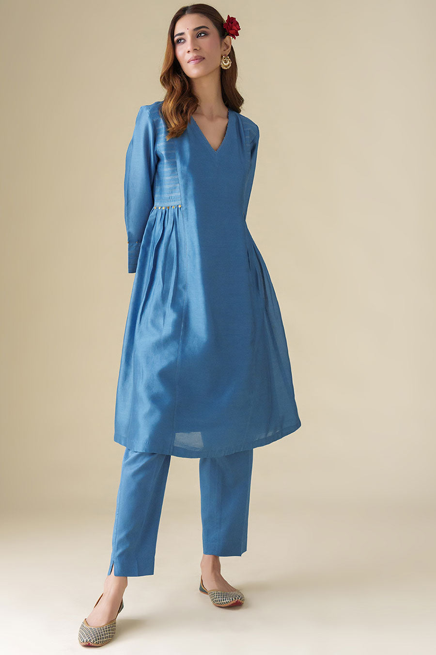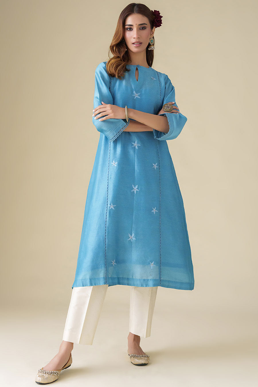 Blue Bead-Embellished Kurta & Pant Set (Set of 2)