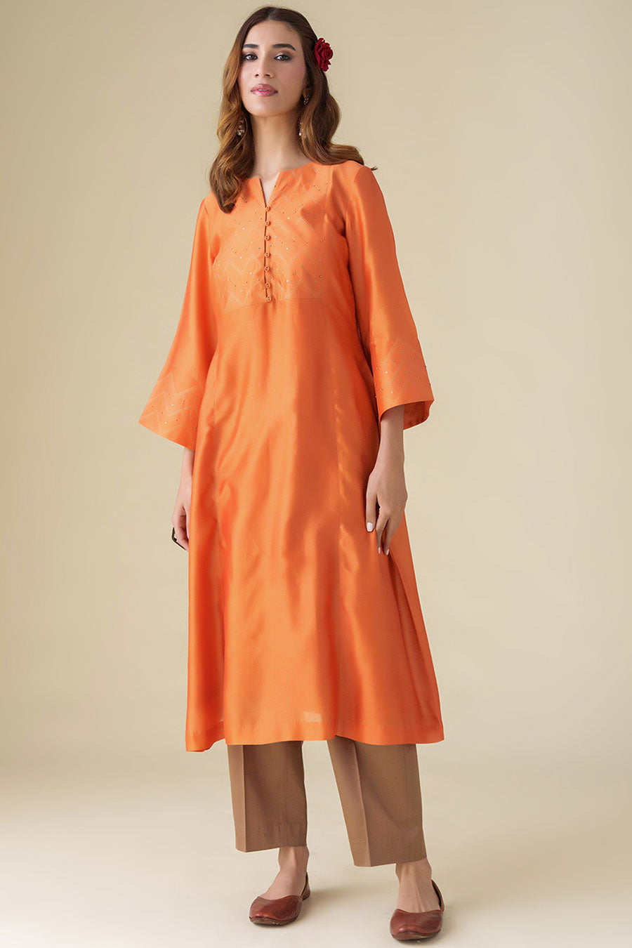 Orange Zari-Embellished Kurta & Pant Set (Set of 2)