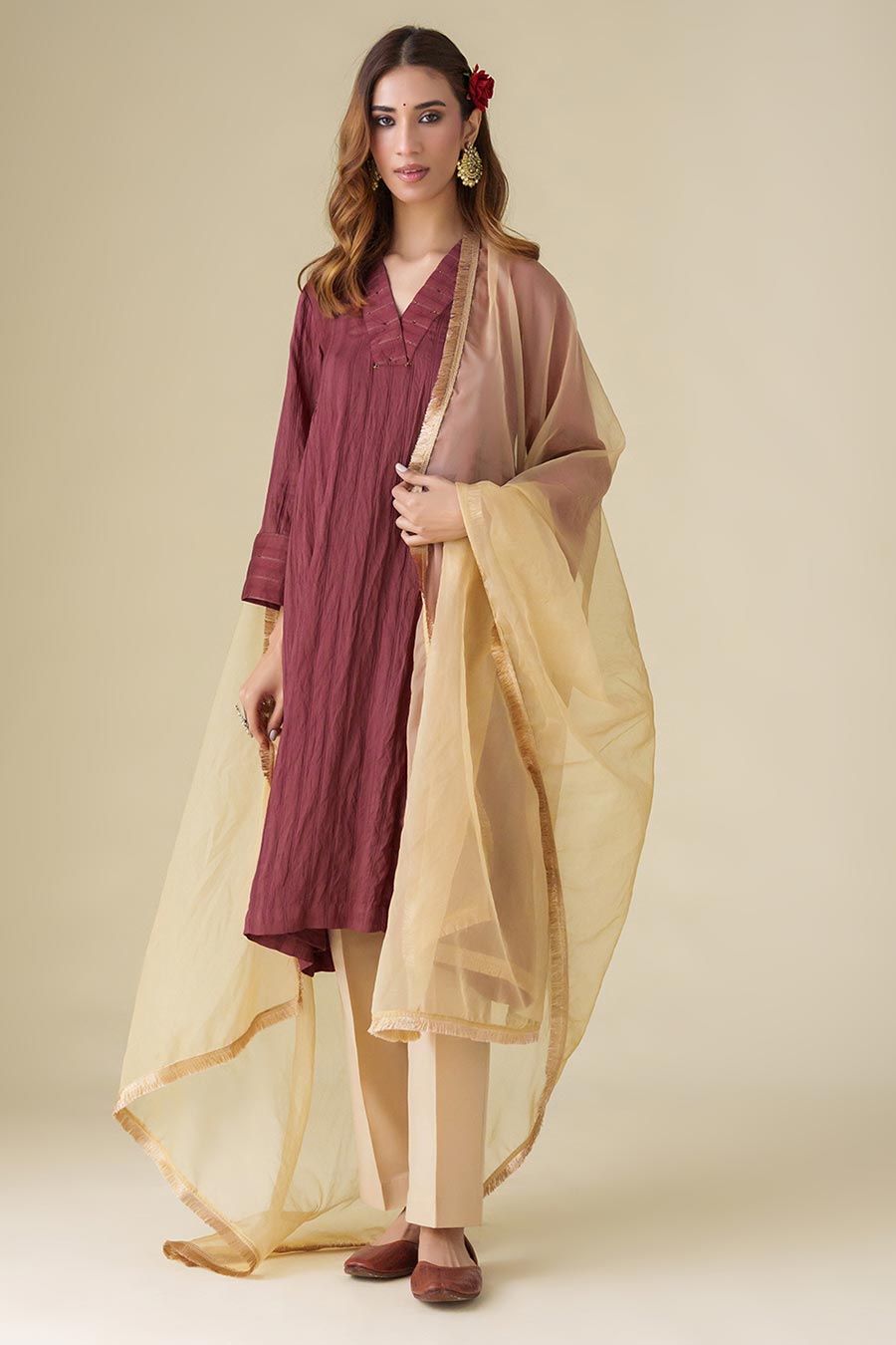 Maroon Embellished Kurta & Pant Set (Set of 2)