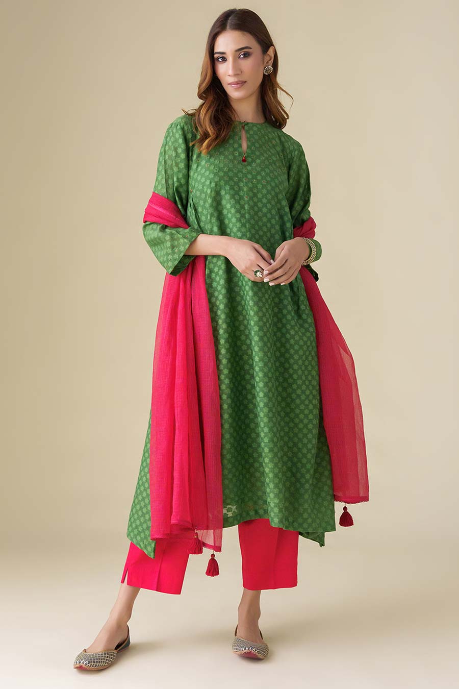 Green Hand-Embellished Kurta & Pant Set (Set of 2)
