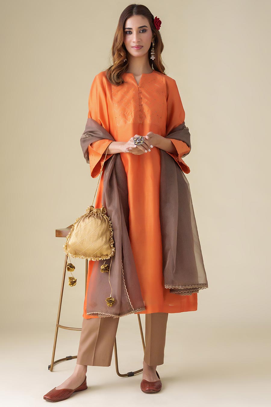 Rust Embellished Navika Kurta