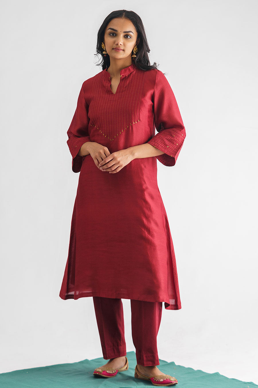 Maroon Threadwork Kurta & Pant Set (Set of 2)