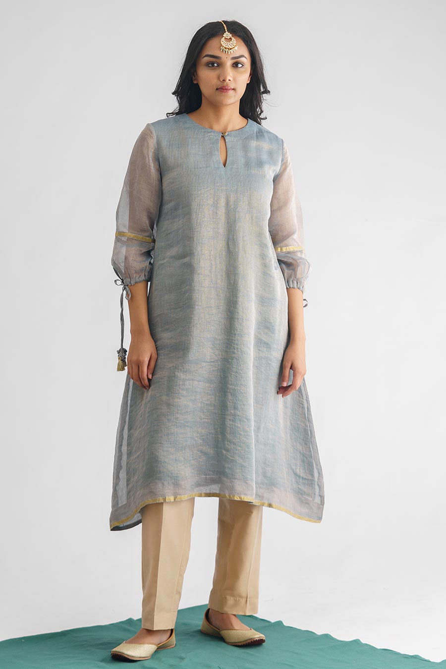 Blue Bead Embroidered Kurta & Pant Set ( Set of 2)