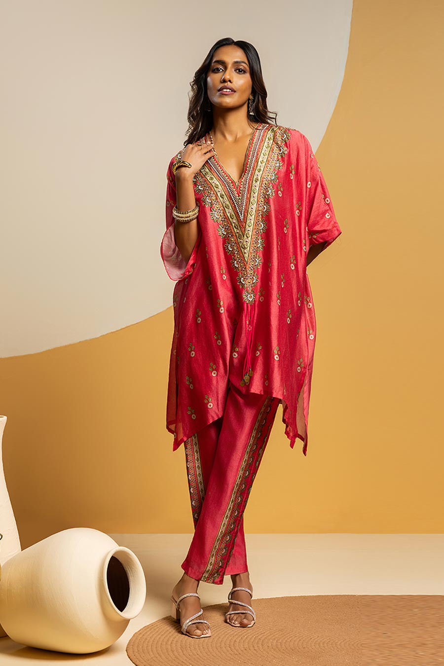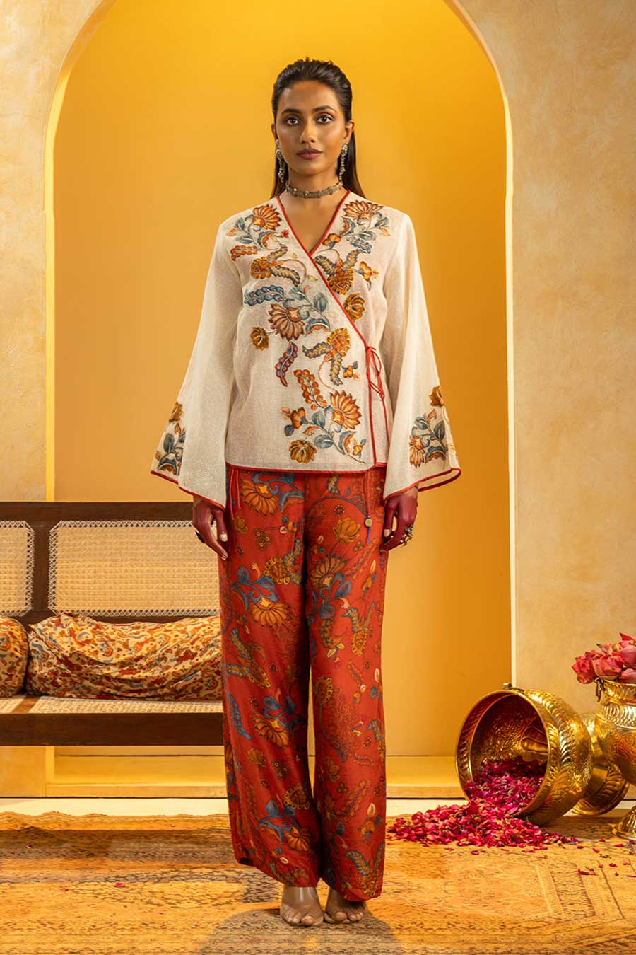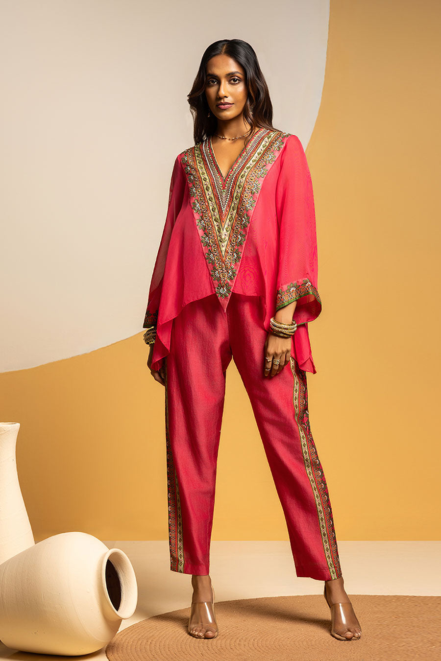 Rangtara Maroon Co-Ord Set with Appliqued Top