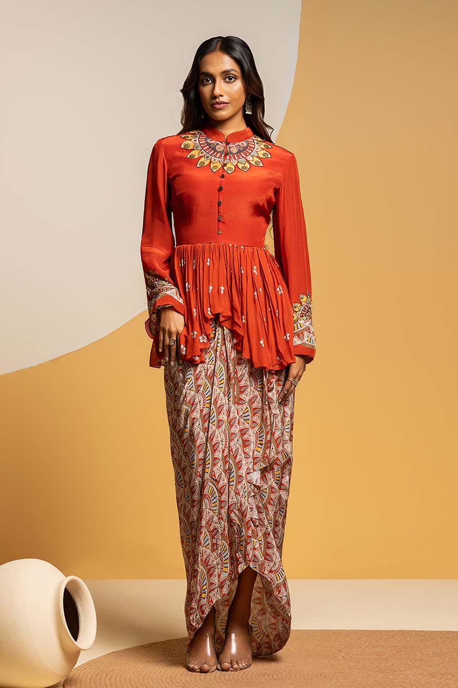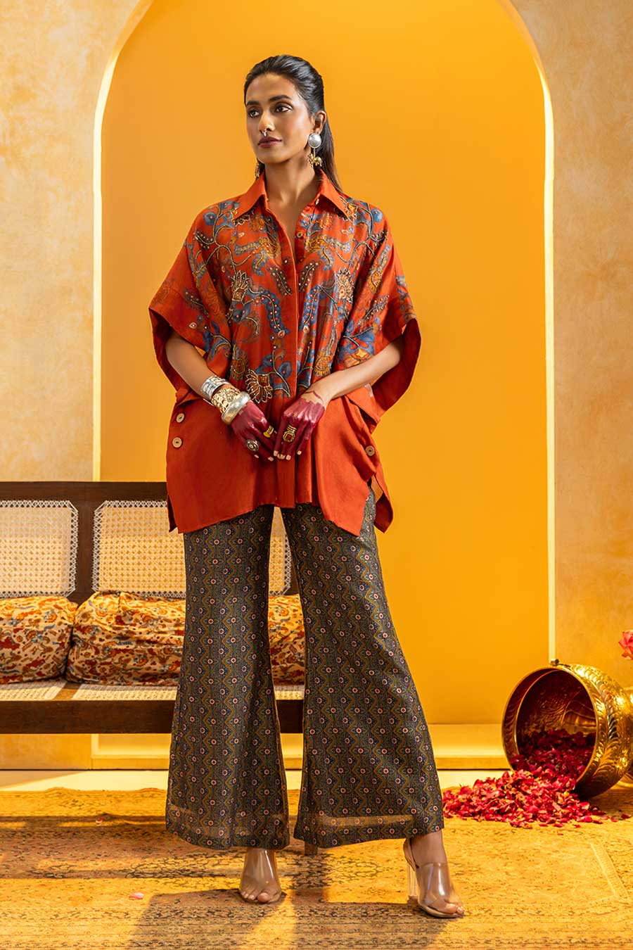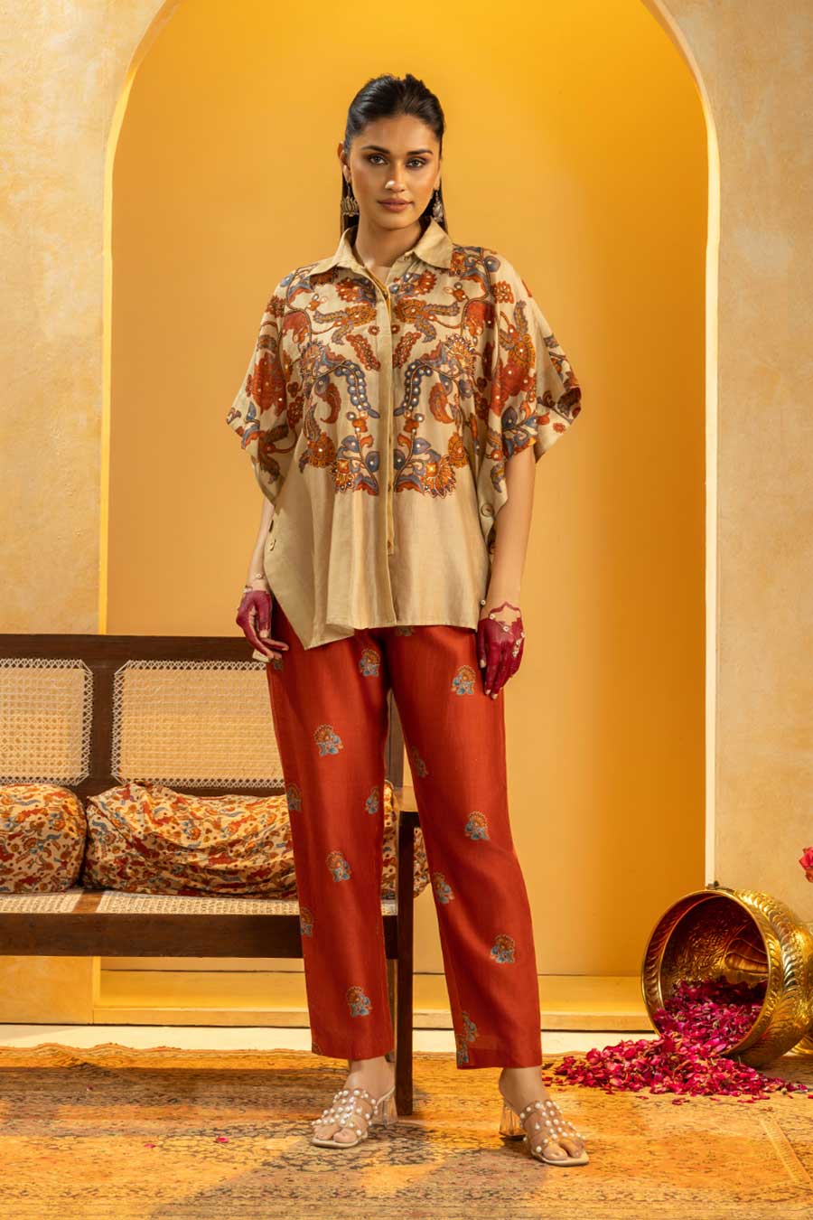 Rangtara Maroon Co-Ord Set with Appliqued Top