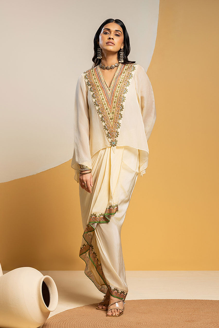 Rangtara Appliqued Pre-Stitched Saree & Blouse Set