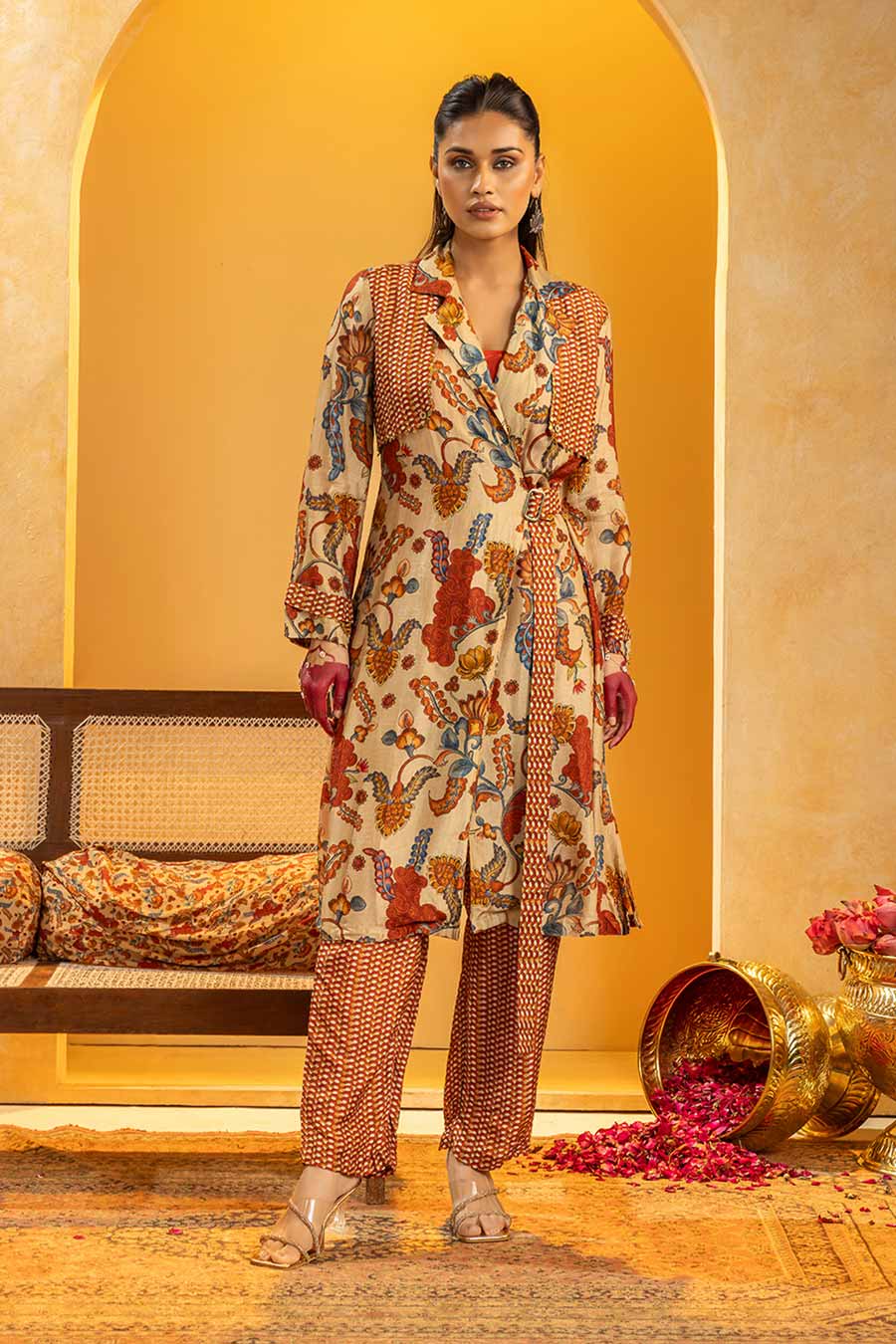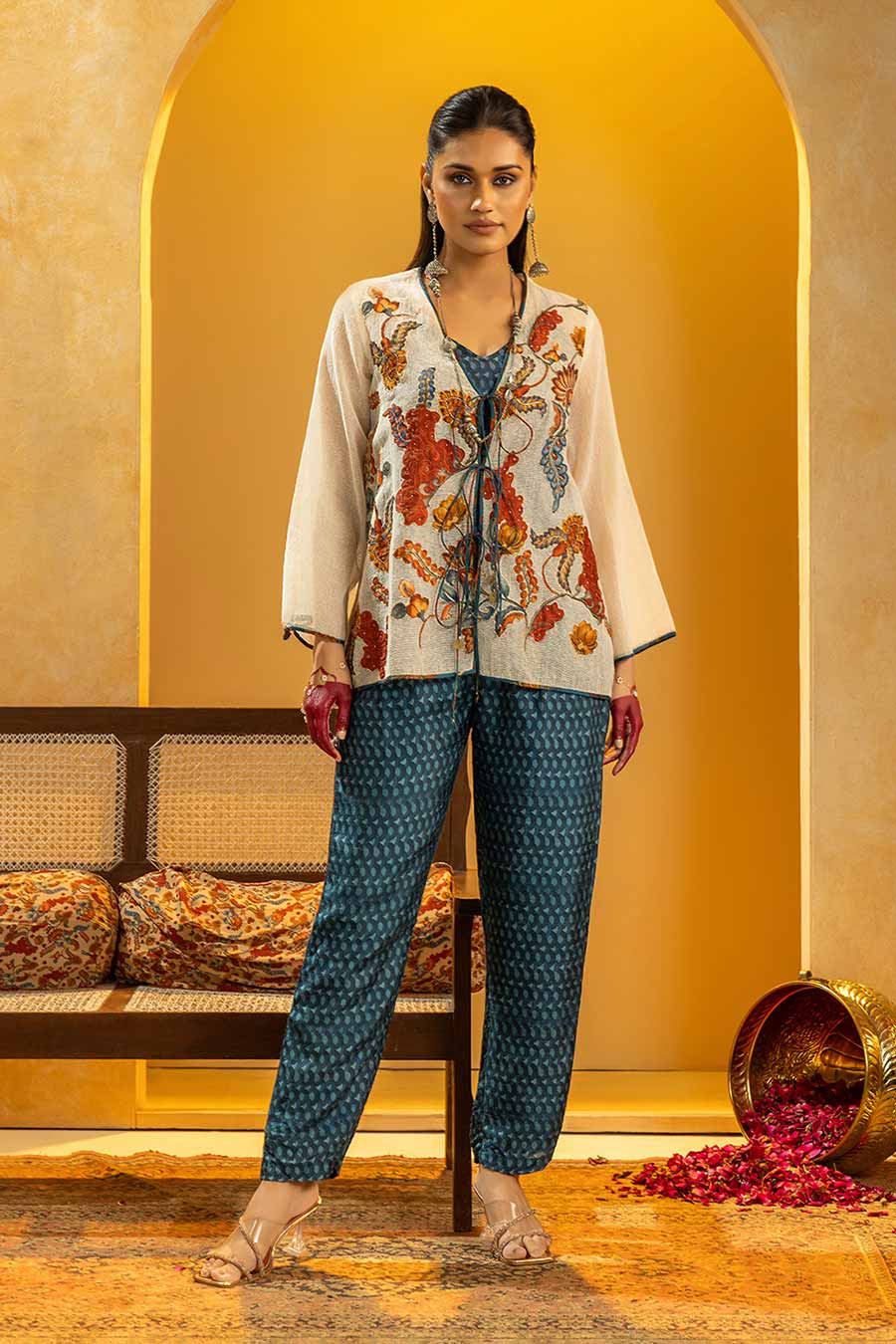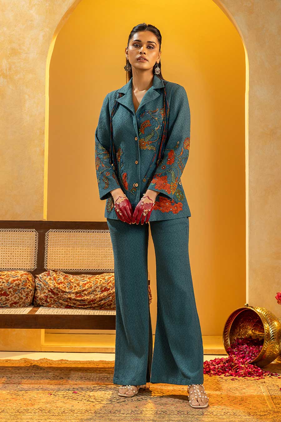 Rangtara Blue Appliqued Blazer Co-Ord Set