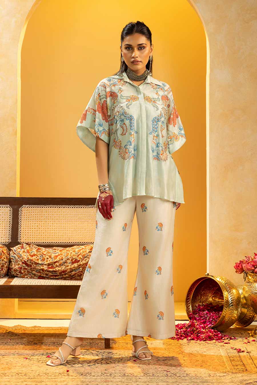 Rangtara Blue Co-Ord Set with Appliqued Top
