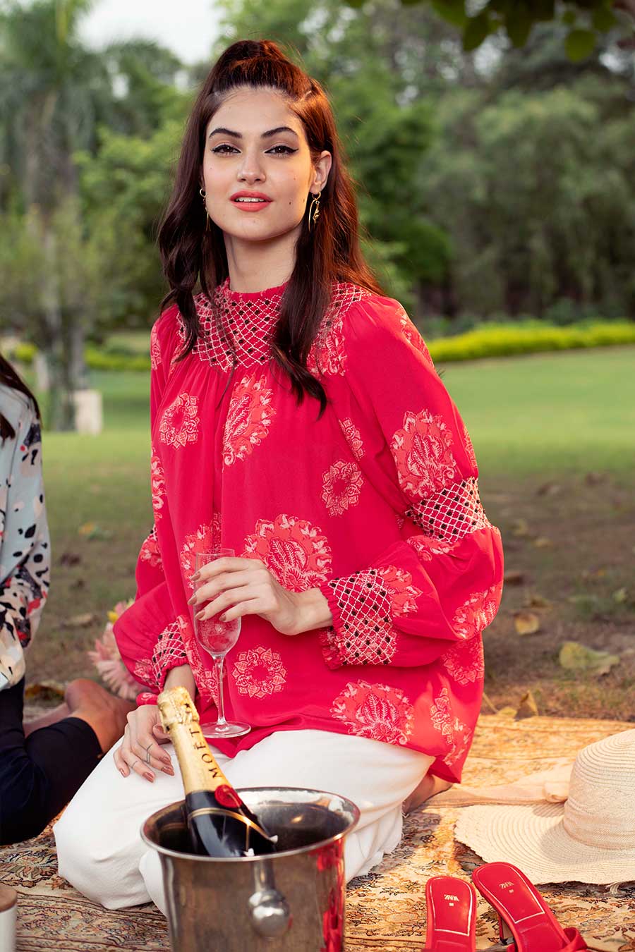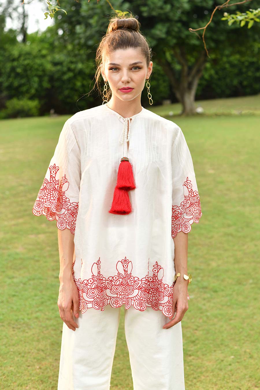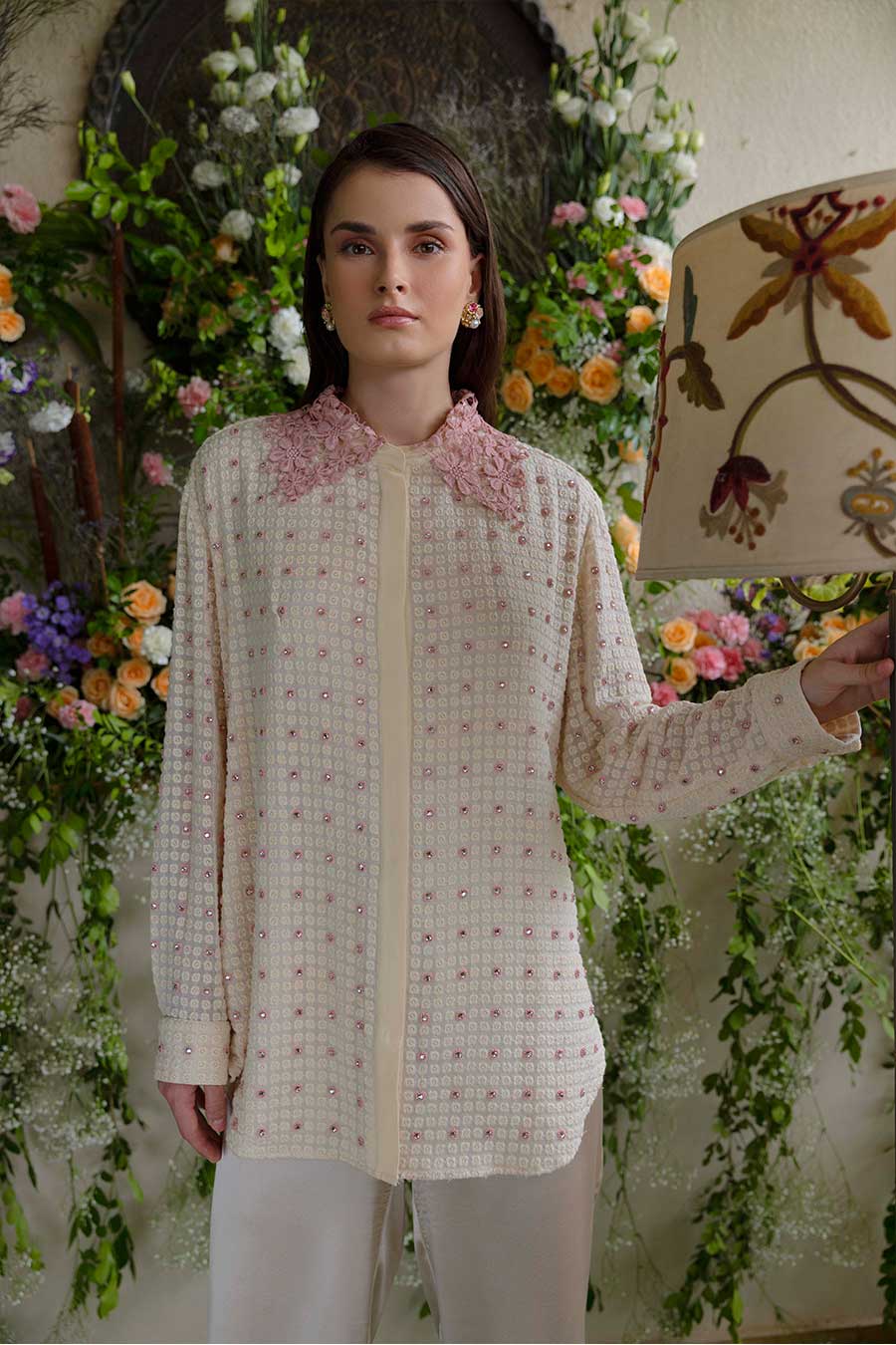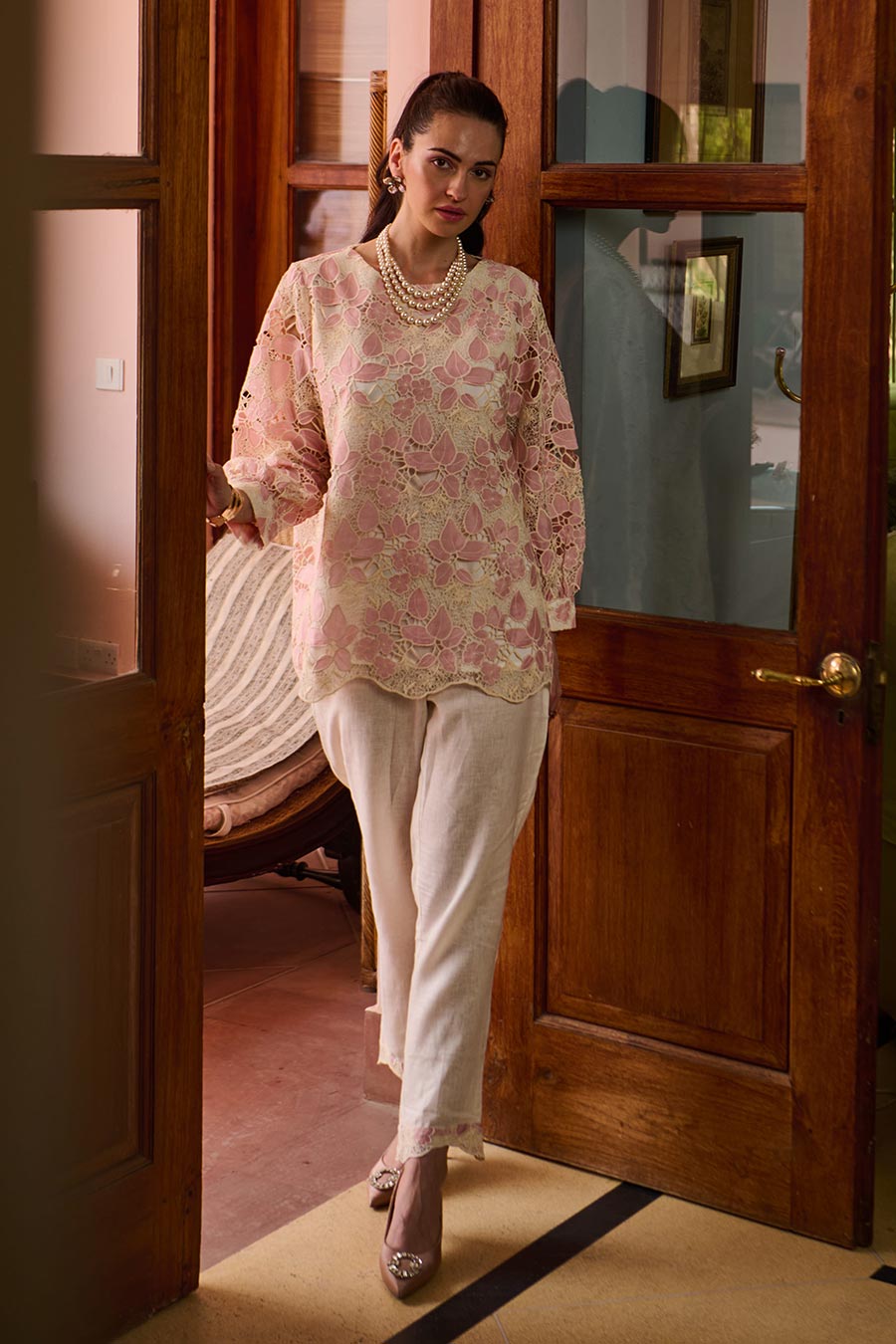 Rose Pink & Ivory Lace Embroidered Co-Ord Set