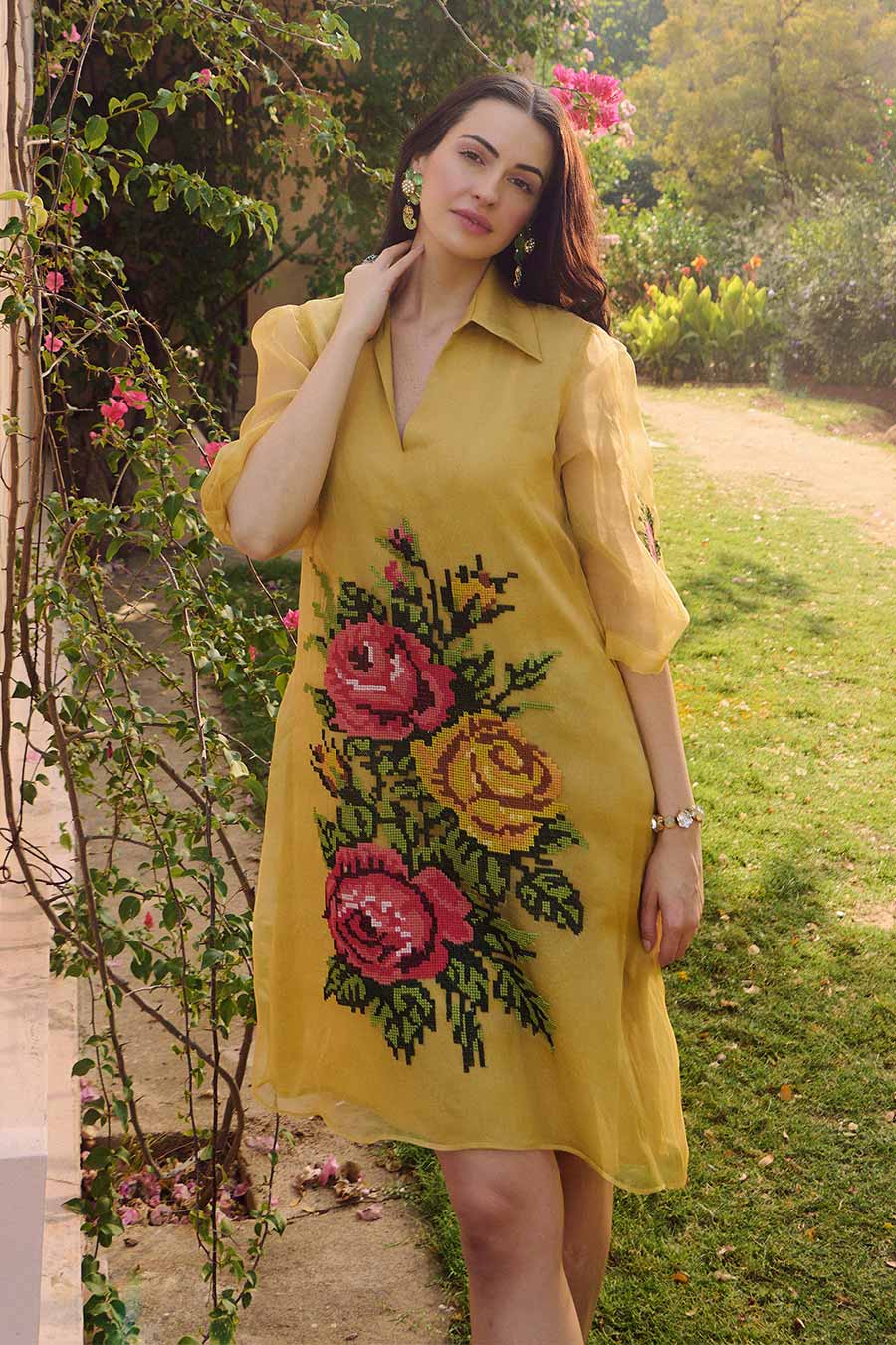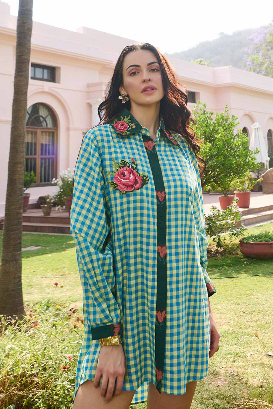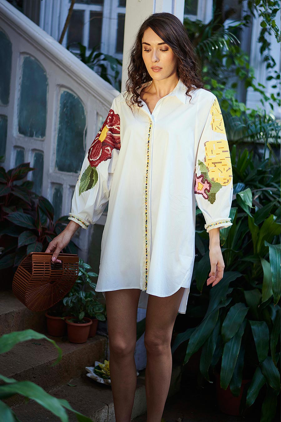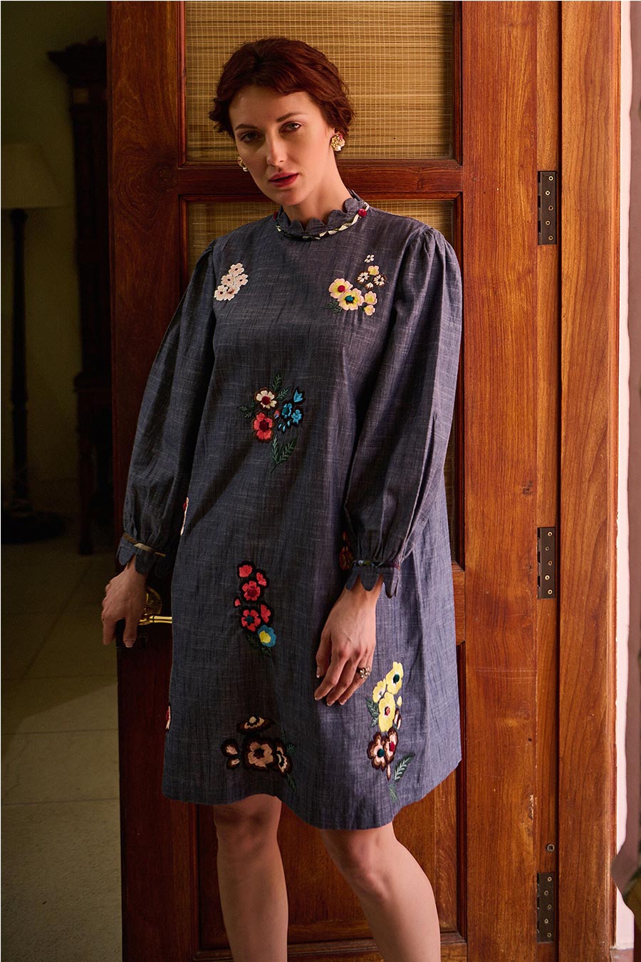 Layla Pink-Blue Cross Stitch Shirt Dress