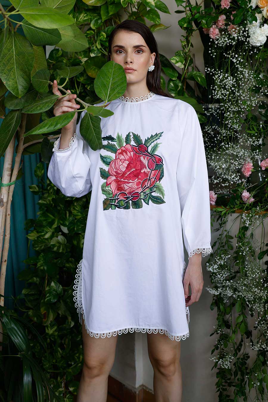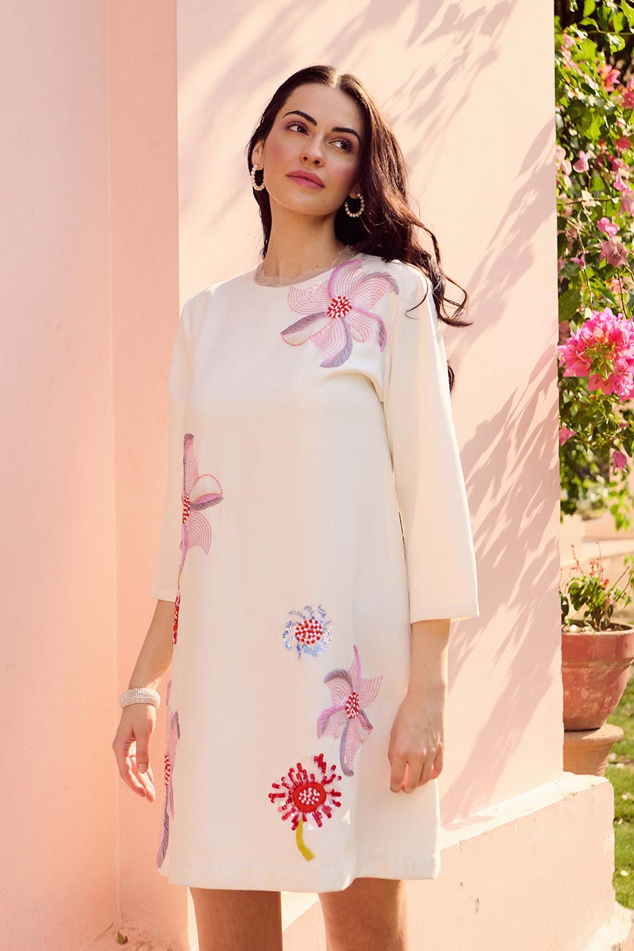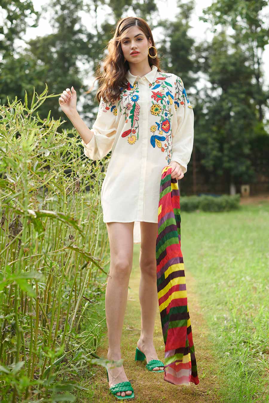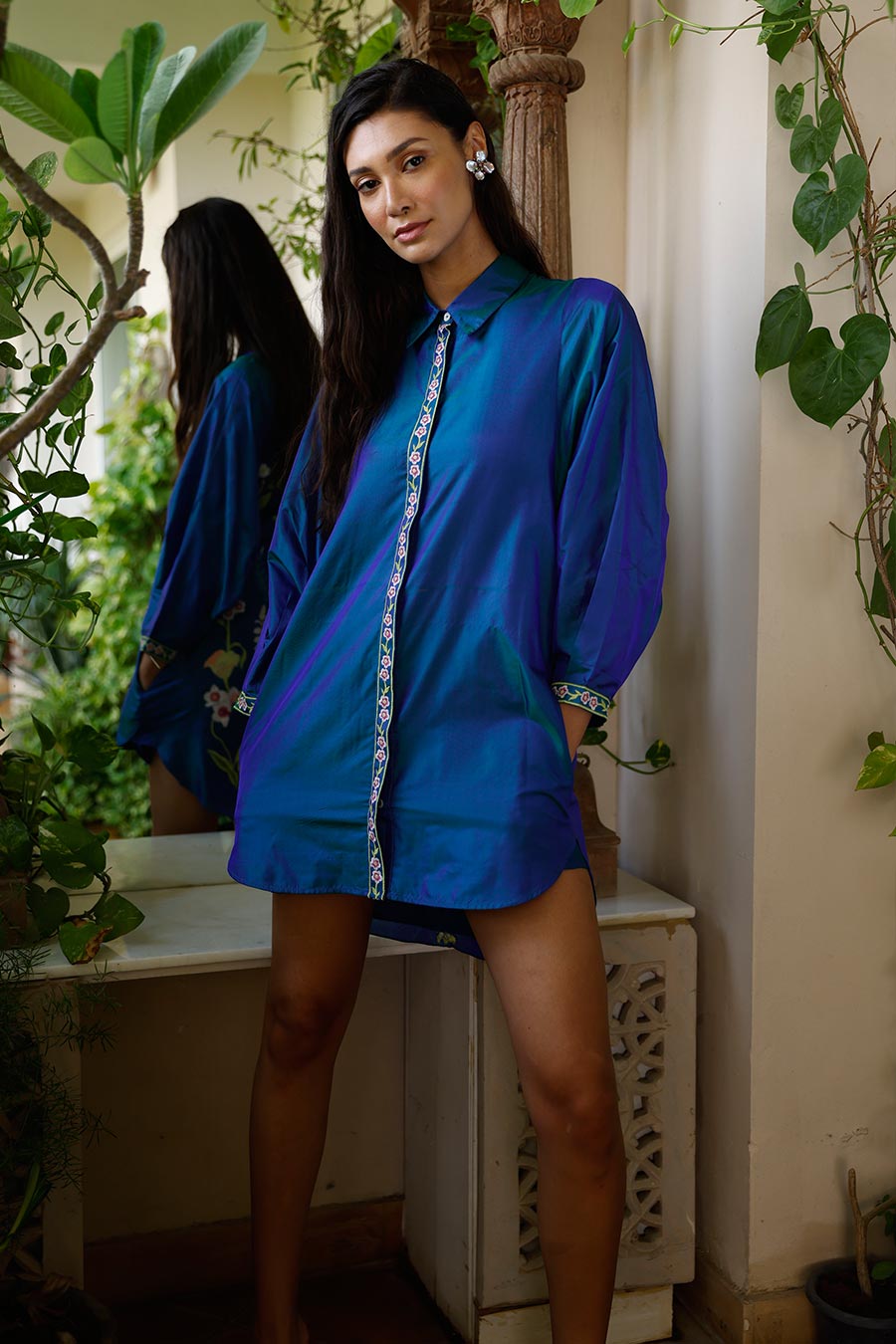 Layla Pink-Blue Cross Stitch Shirt Dress
