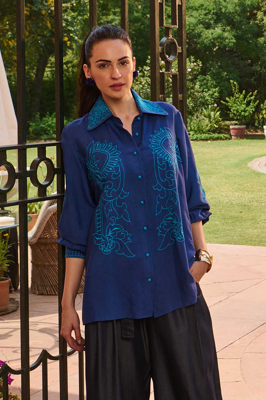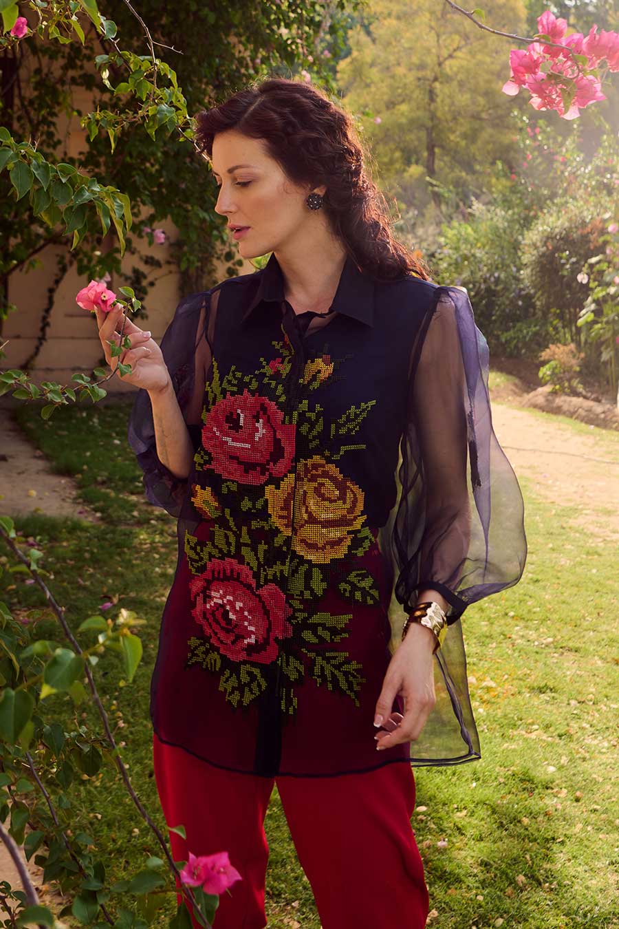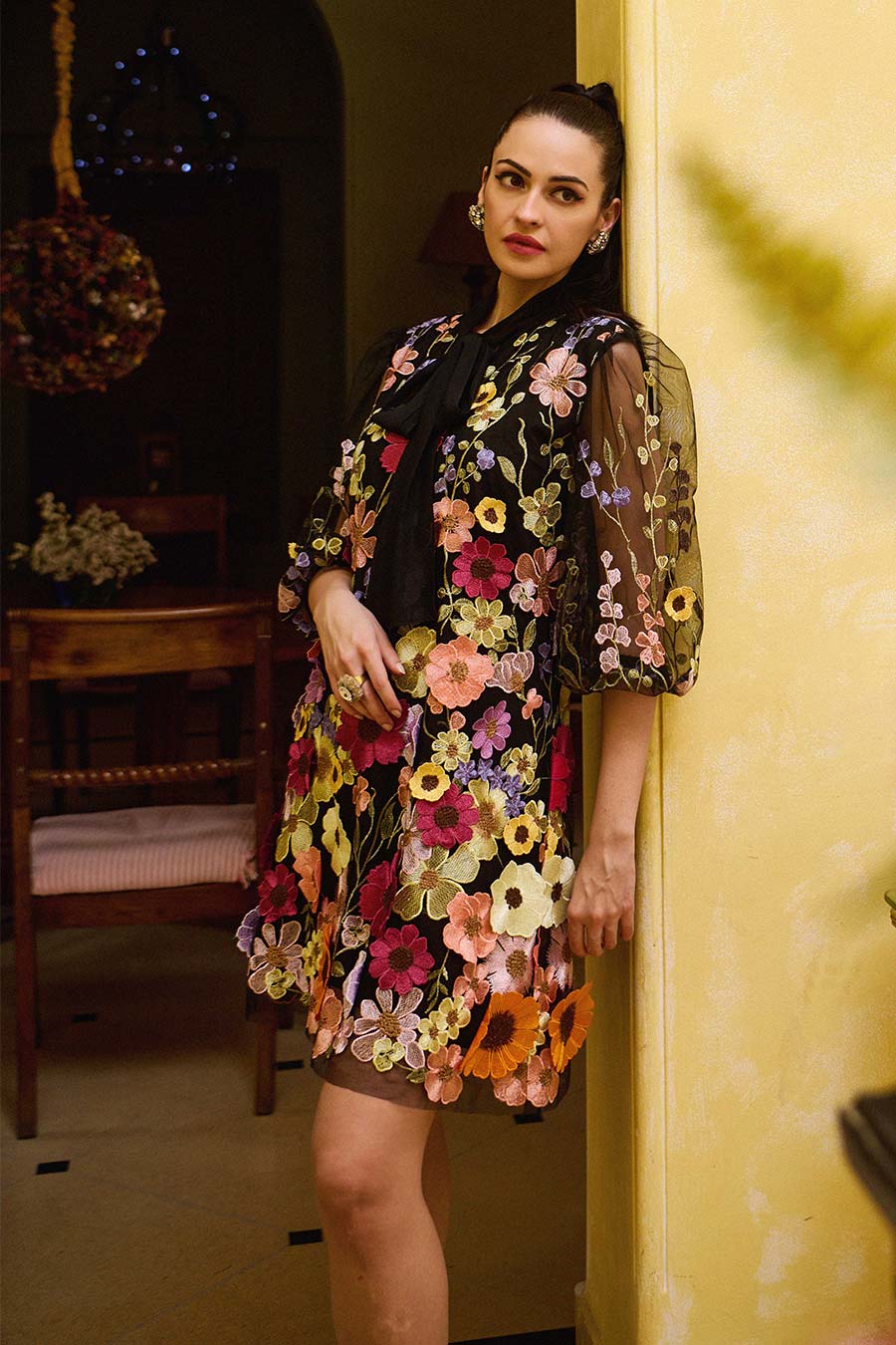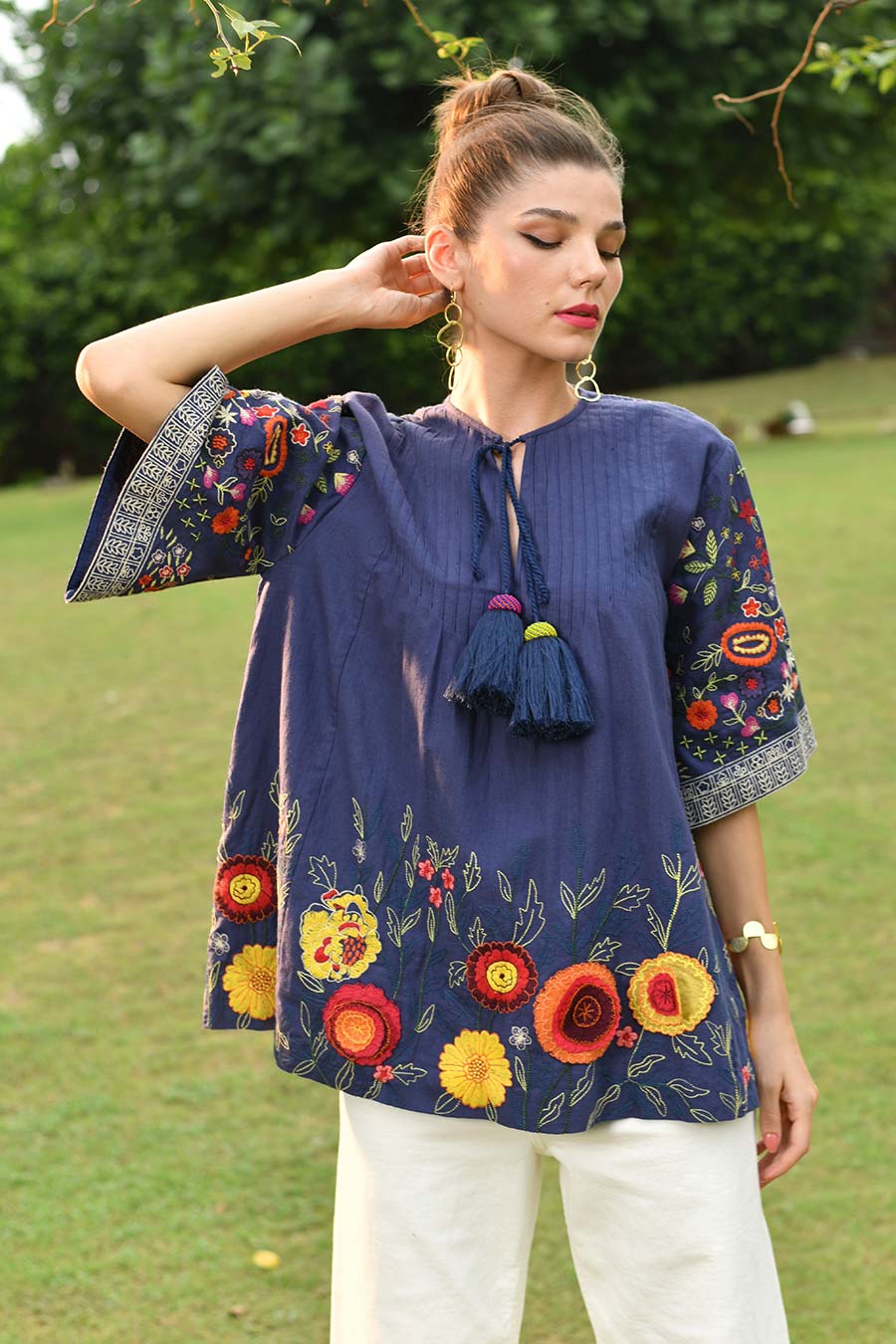 Layla Pink-Blue Cross Stitch Shirt Dress