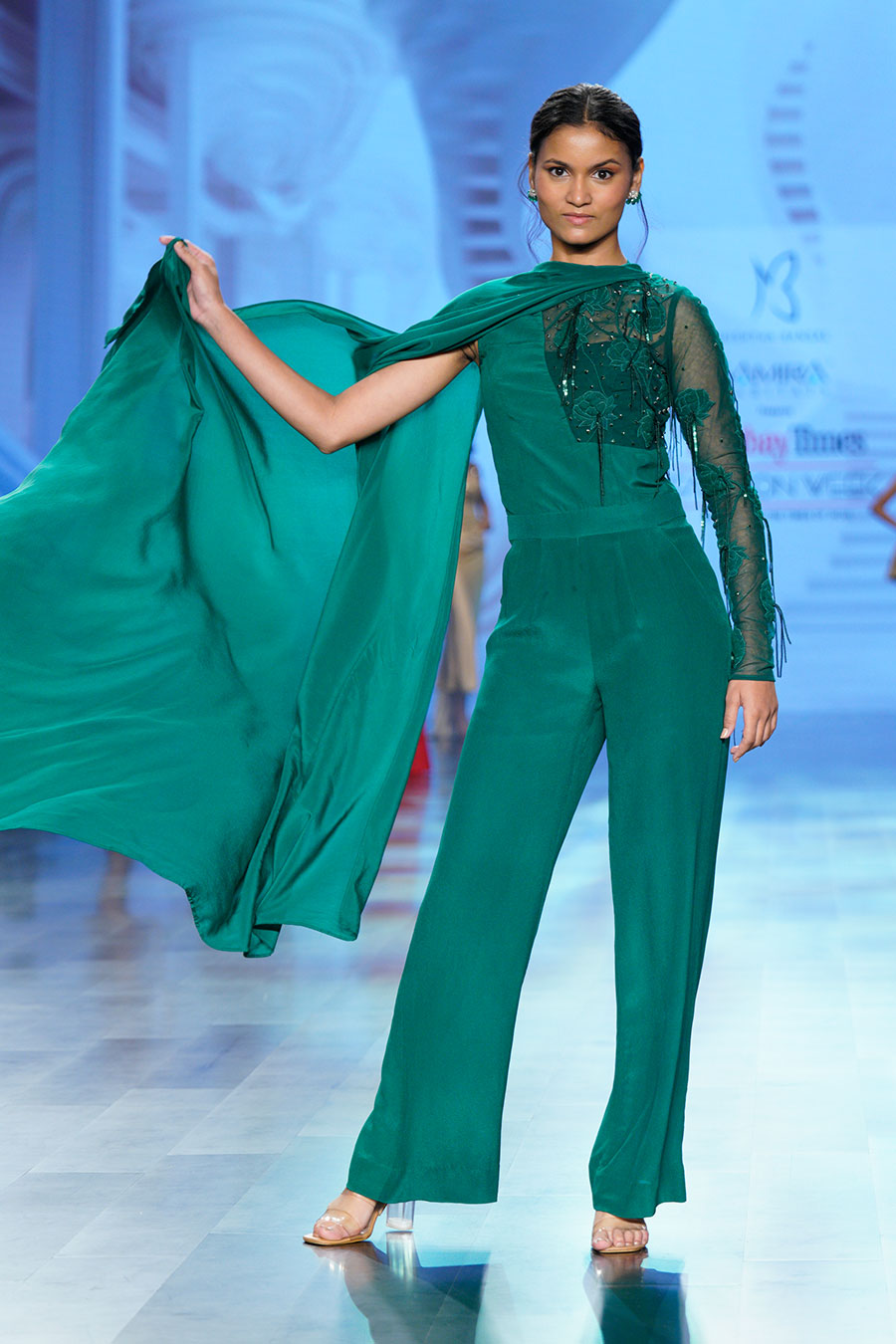 • Green embellished drape jumpsuit