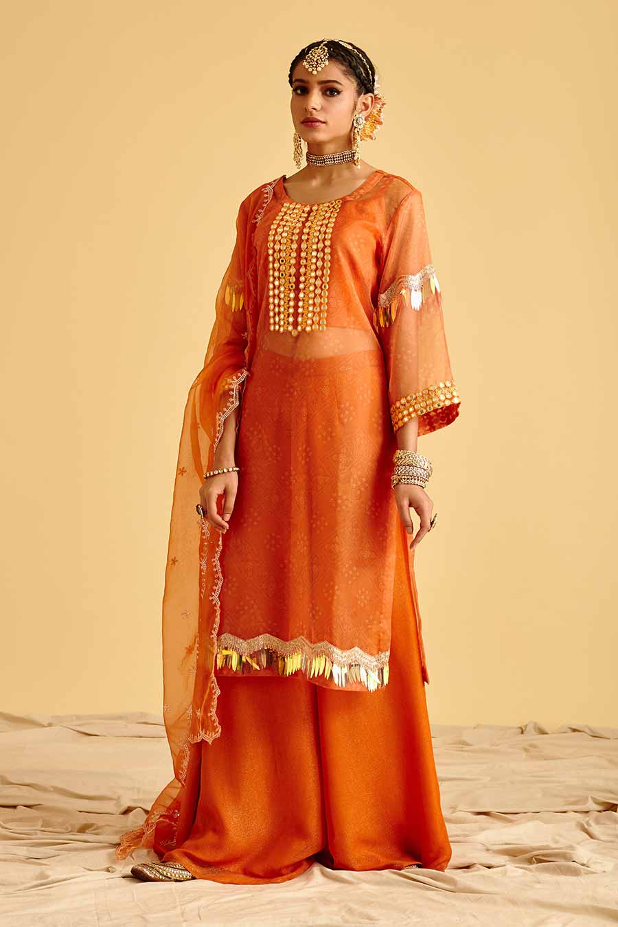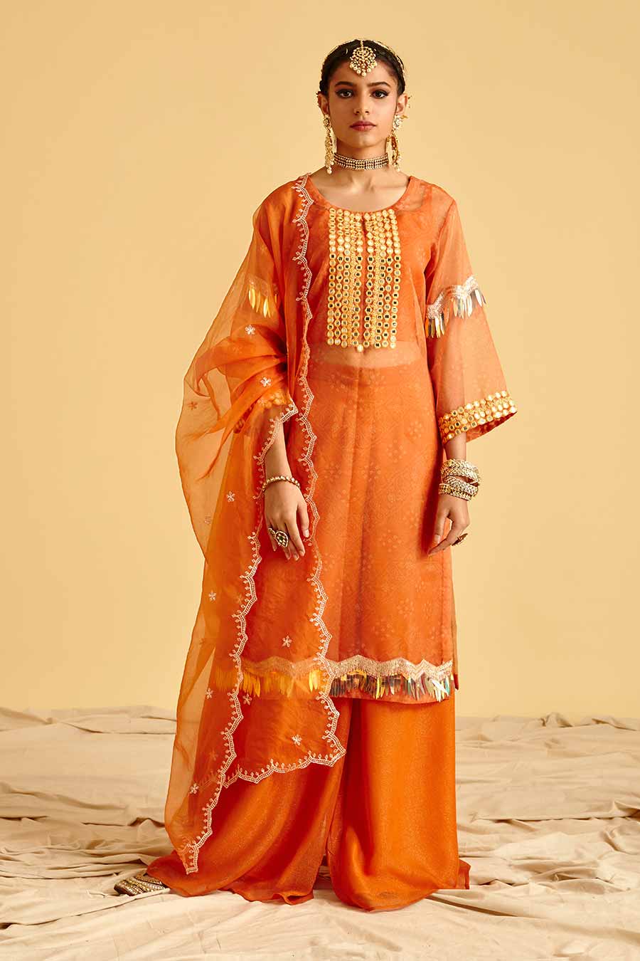 Orange Embroidered Kurta Sharara Set