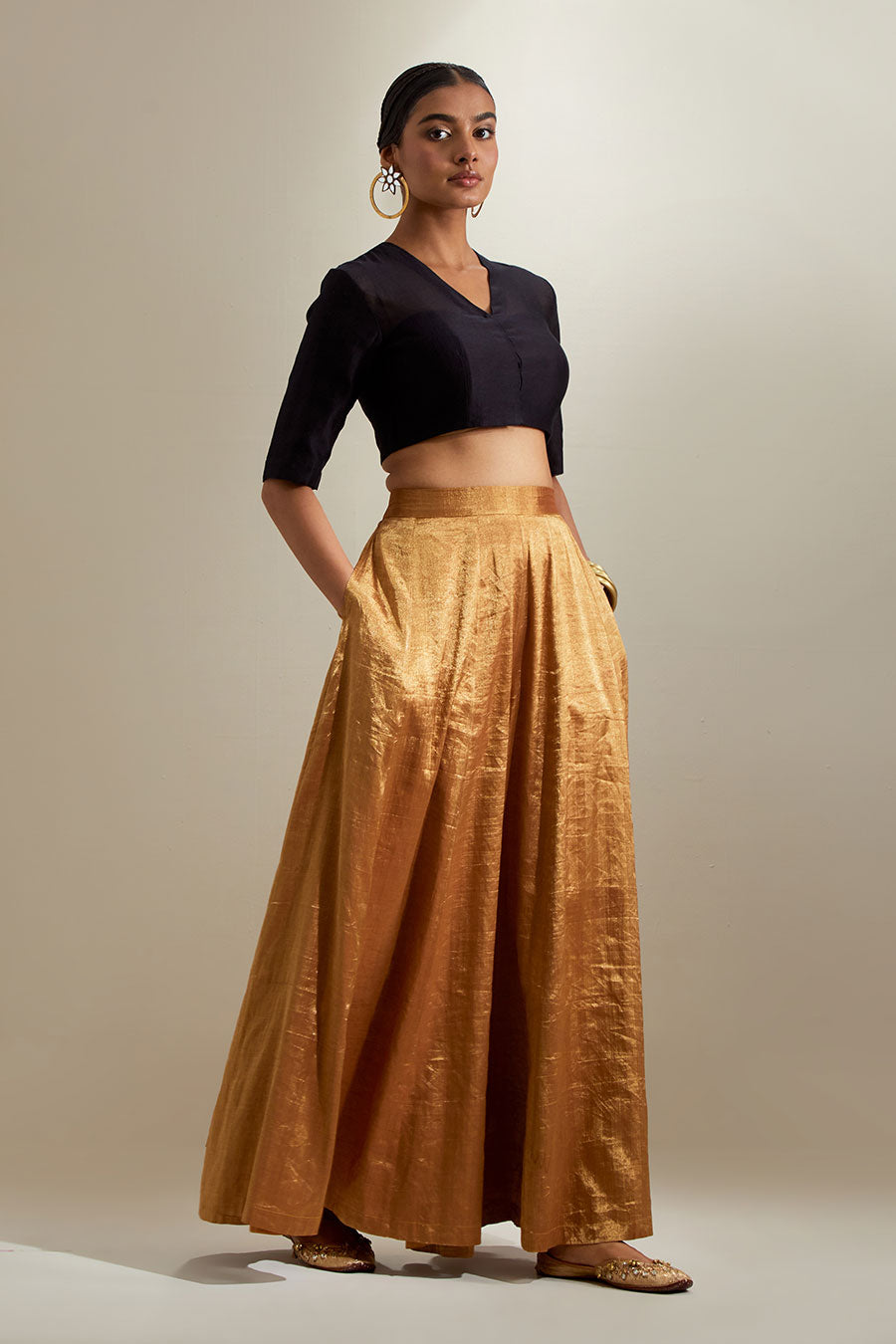 Black & Gold Zari Sharara Set With Silk Dupatta