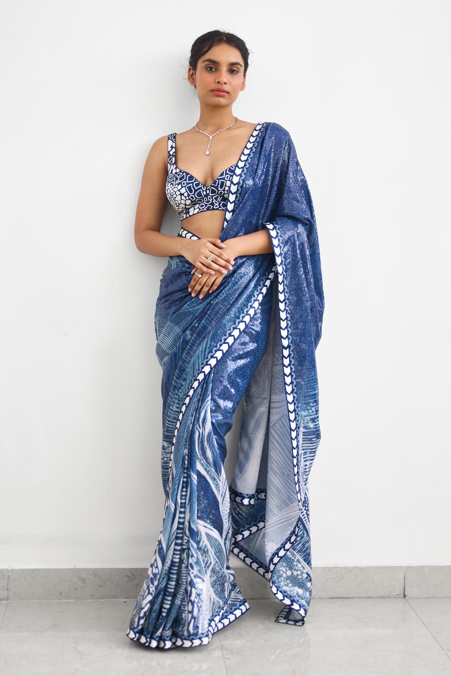 - Material - Saree - Sequined Fabric; Blouse - Satin Silk